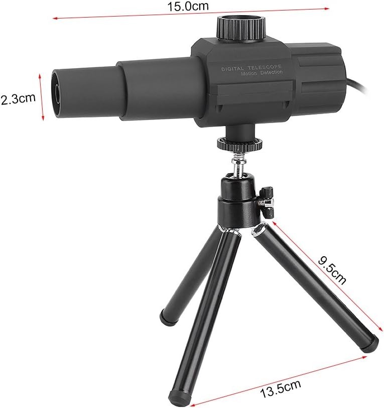 Description:This is one of the latest smart telescopic monitor system, and it can be widely applied to many fields. Inherited with traditional monitor camera's functions, besides, it can monitor through further distance and easier installation and debugging without circuitry, power, control and storage hosts.Cooperated with digital telescope software, you can capture a moving object, videotape it, sound the alarm and perform an online live show. It adopts highly compressed video files that only occupies very small space.Specifications:Color: BlackPackage Weight: 230gCamera: 2 MegapixelPixel: 2 MegapixelLen: 70 times zoomingAngle of View: 1.2Light Filter: Daily OneInterface: USB 2.0 or upper version.Telescope Size: 15 x 2.3cm / 5.91 x 0.91inchUSB Wire Length: 1.5 meter / 59.06inchCompatible System: For Windows Xp, 2000, VIST, Win7, Win8, Win10.Software Language supporting: English, French, Chinese, Malaysian, Japanese, Korean, Thai, Vietnamese, German, Italian, Spanish, Arabic, Portuguese.Package List:1 x Smart Digital Telescope1 x Tripod1 x CD1 x User ManualNote: If you use the provided software, but it can not be installed. you can change the USB port, set to allow installation or you can try with another computer.