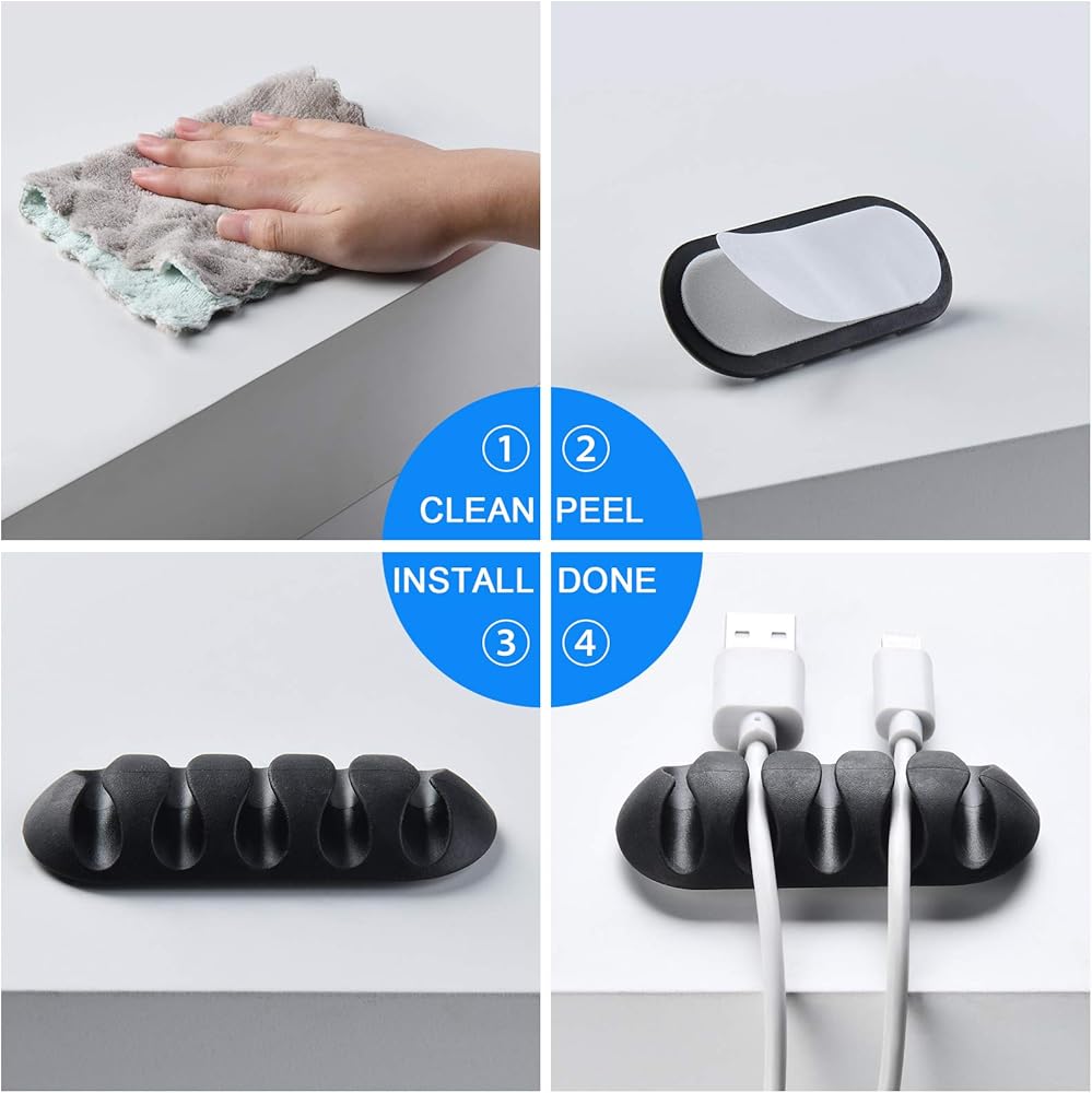 【Easy to Use】 : Simply peel and stick your cable clips holders as needed. Please clean the surface before sticking that make them hold more tight.