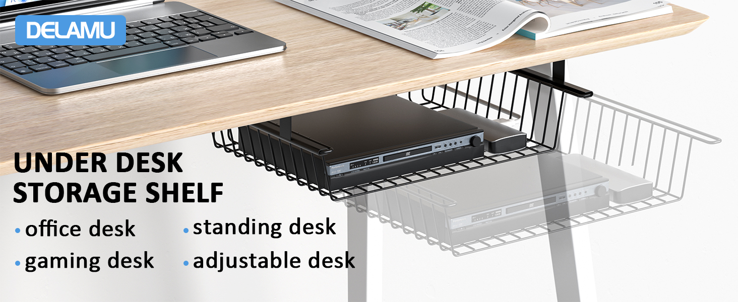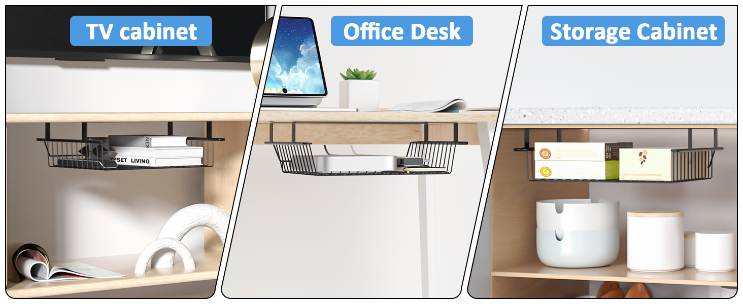 【Under Desk Storage Drawer】Under desk shelf storage provides extra storage space for your desk, organizes power strips and cable management under desk, frees up more office space. The metal drawer storage is versatile for use under desks, TV cabinets, kitchen cabinets, or in closets. Perfect for appliance cables, remotes, electronic.