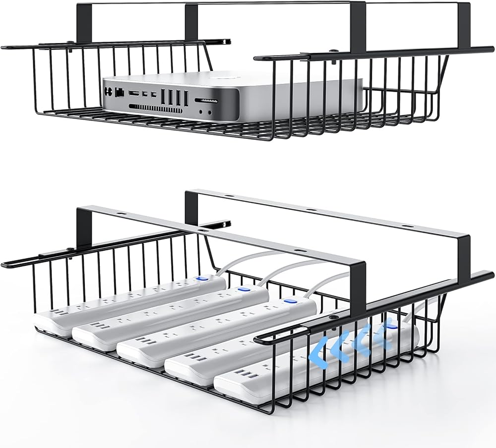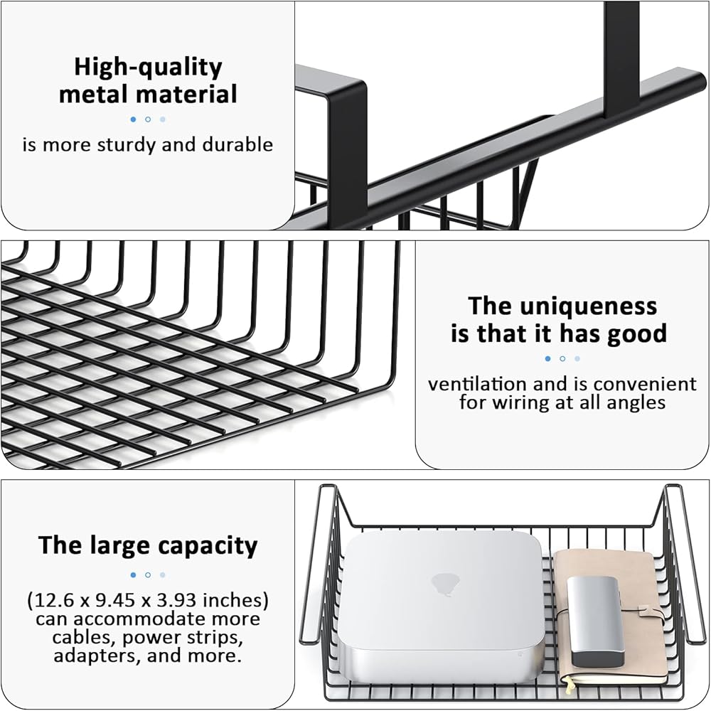 【Large Capacity and Suitable Height】: The under desk cable management tray measures 12.6'' x 9.45'' x 3.93'', and can hold various items such as iPad, Mac mini, surge protector, hard drives, docking station, power cords, USB hubs. It helps to clear up your desk space.