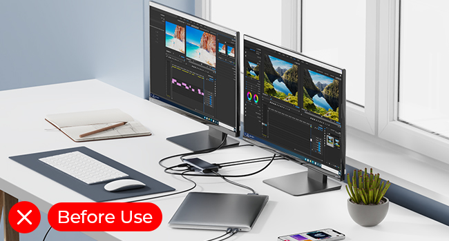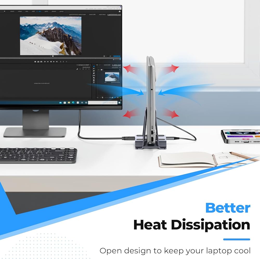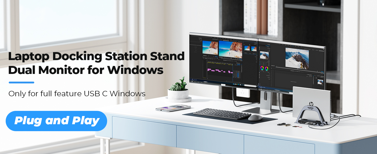 Multifunction Dual HDMI Docking Station: This 4URPC laptop hub docking station combines the functions of the type c docking station and laptop stand. Not only can it extend dual monitor for full feature USB C Windows laptop, but it can also be used as a stand when the laptop lid is closed to save your desktop space and improve your work efficiency. In addition, The USB C docking station stand also helps heat dissipation and keeps your computer running fast and smooth throughout the day.