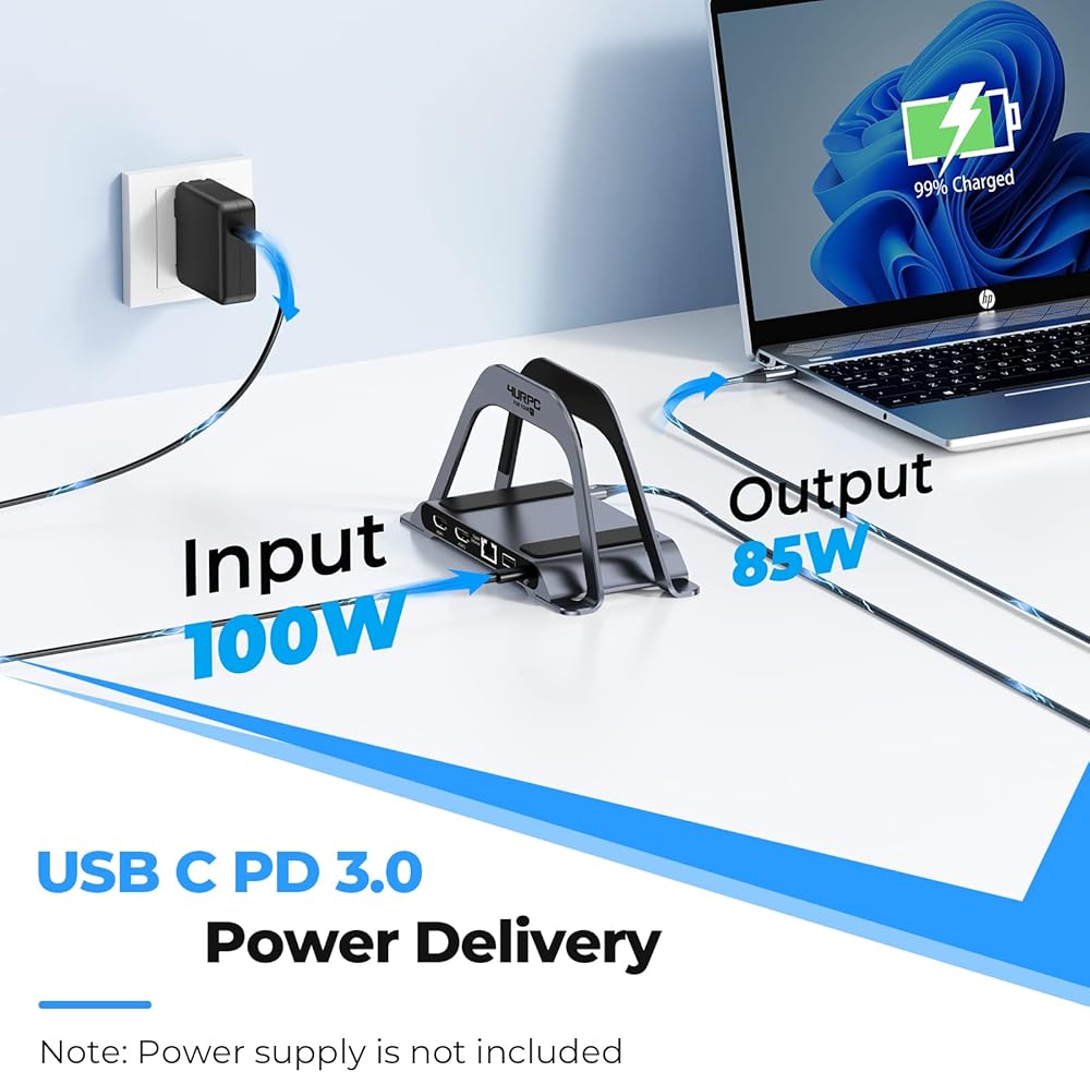 Up to 87W Charging for Your Laptop: This PD 3.0 port of this laptop docking station dual monitor supports up to 100W power input and offers 87W power charging for your windows laptop. This laptop dock offers high-speed stable charging for your laptop when connecting multiple devices. For stable use, please use a USB C power supply greater than 65W to charge it. (NOTE: Power supply is not included.)