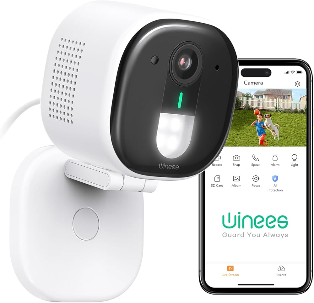 winees Outdoor Security Camera, 2K 4MP Outdoor/Indoor Camera for Home Security, Human/Pet AI Detection, Color Night Vision, 2.4G WiFi, 2-Way Audio, Support Cloud/128G SD Card Storage