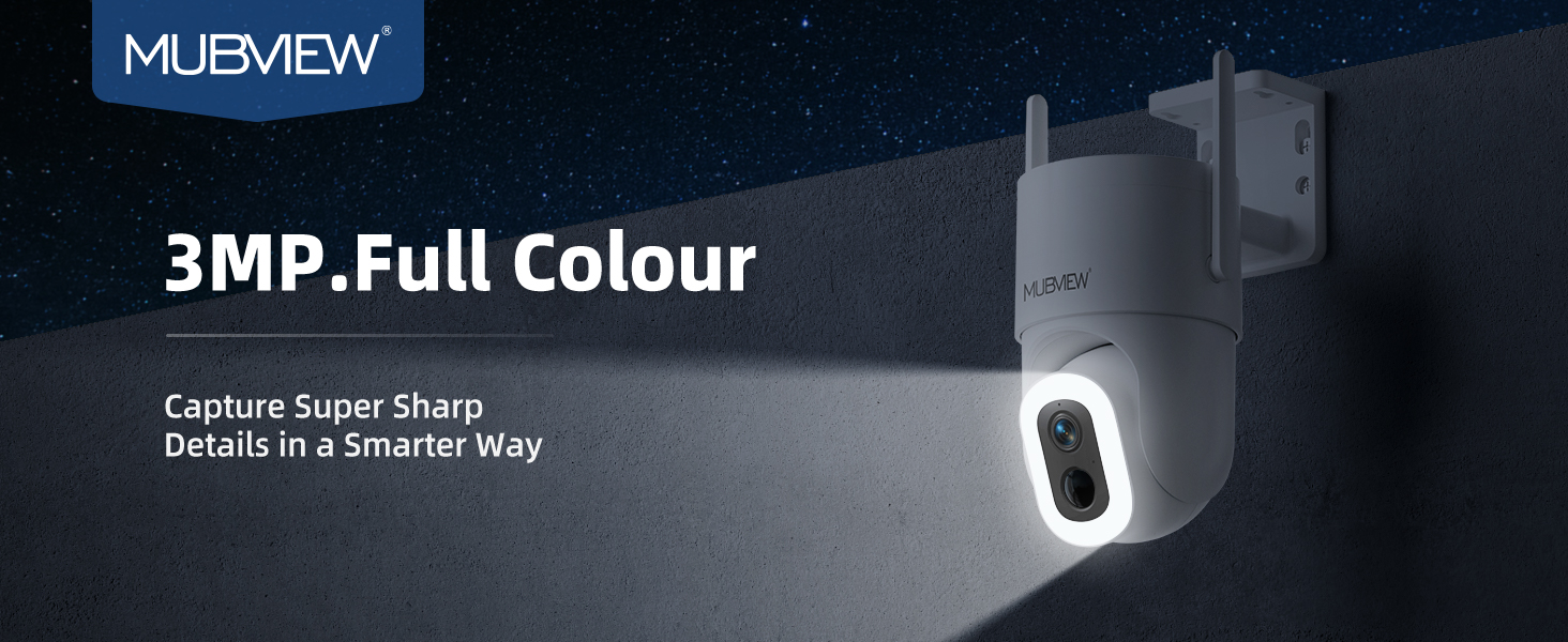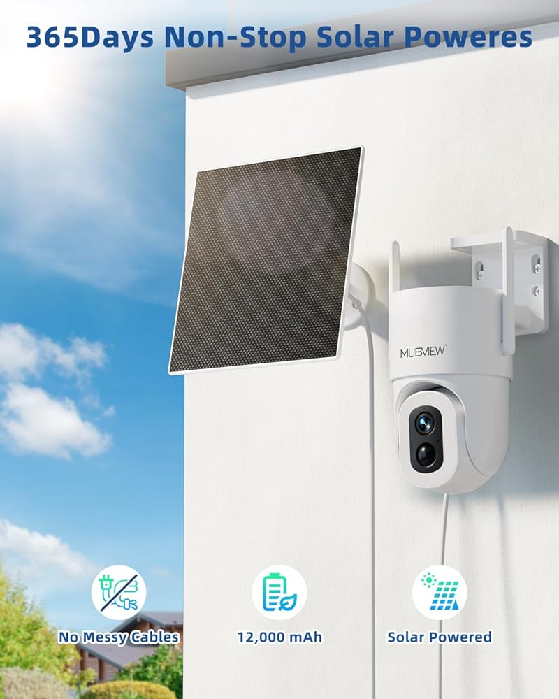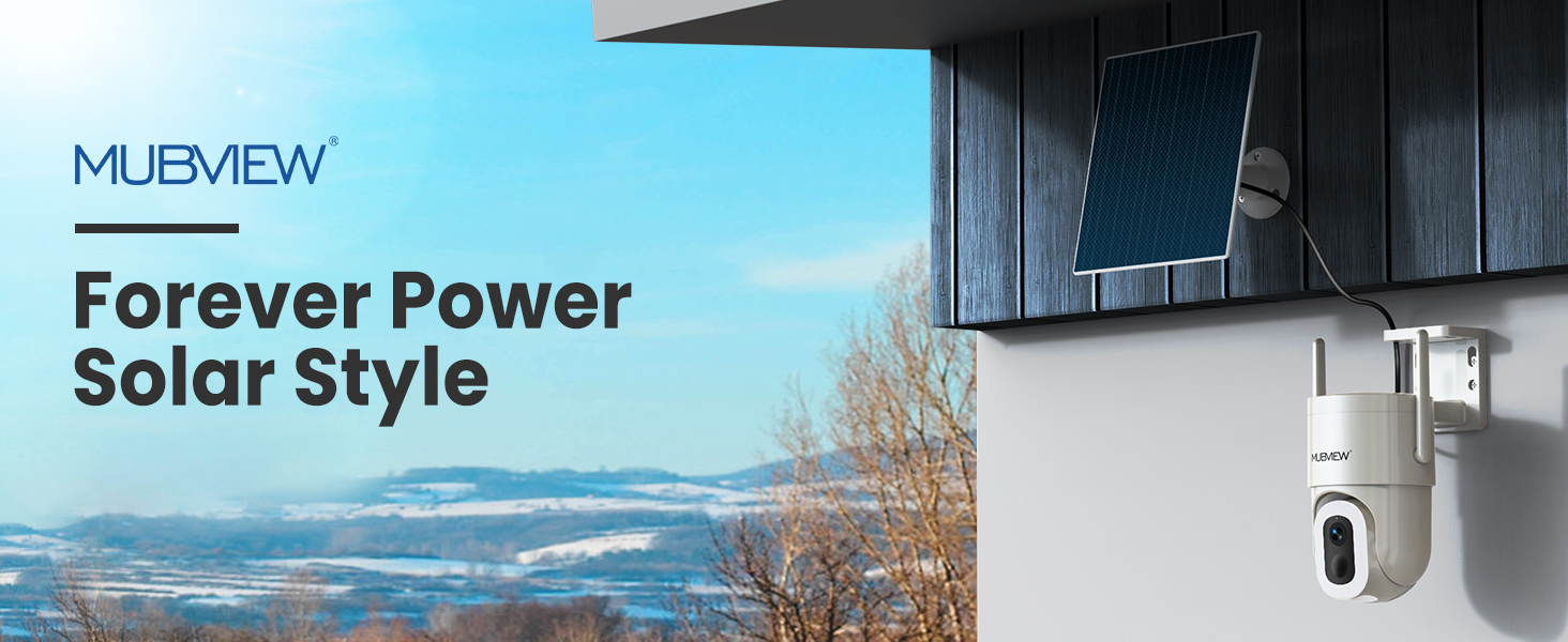 MUBVIEW Solar Security Cameras Wireless Outdoor, 2K Battery Powered Security Camera, Floodlight Camera with 800 Lumens Light & Siren, 360° PTZ, Color Night Vision, PIR Detection, 2.4GHz, IP66
