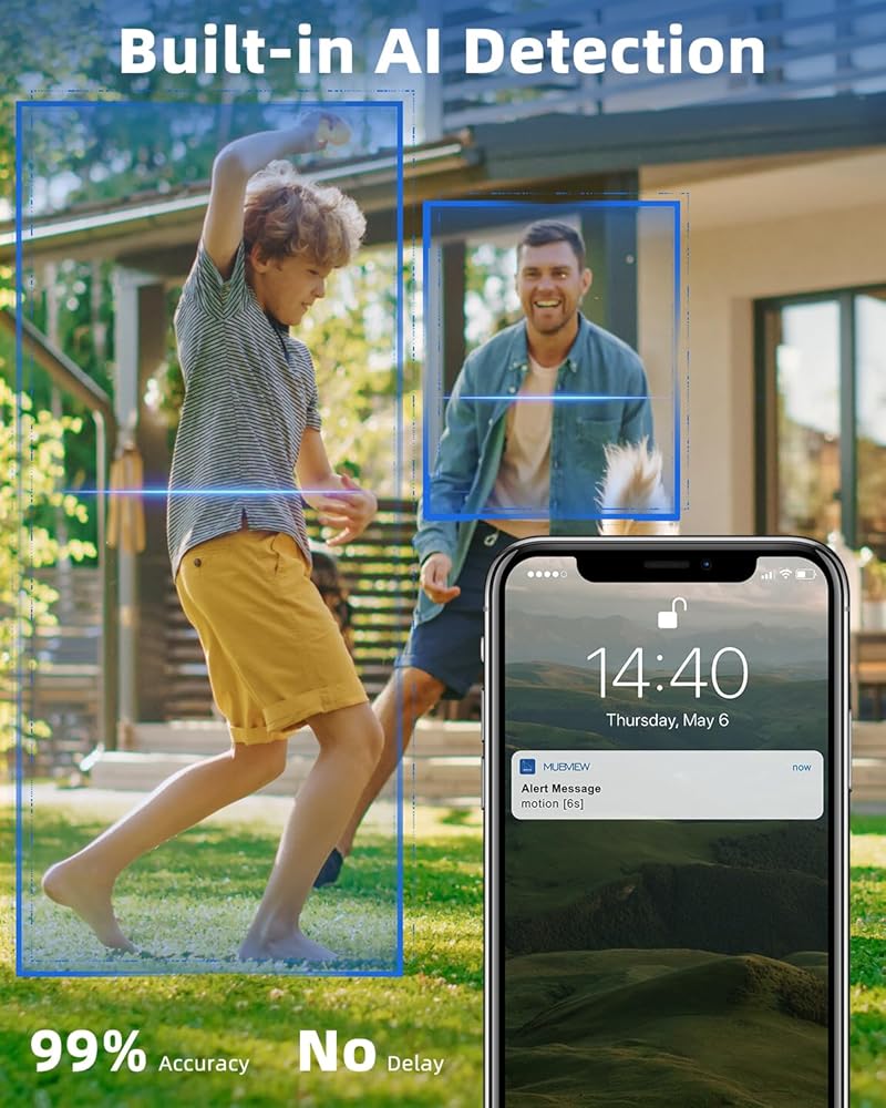 𝐈𝐧𝐭𝐞𝐥𝐥𝐢𝐠𝐞𝐧𝐭 𝐀𝐥𝐚𝐫𝐦 & 𝟐-𝐖𝐚𝐲 𝐓𝐚𝐥𝐤: Security camera outdoor wireless provide PIR human detection and area customization to reduce false alarms triggered by wind, leaves, critters, etc.; In anywhere you can see, hear and speak to people from your phone via crisp 2-way audio.