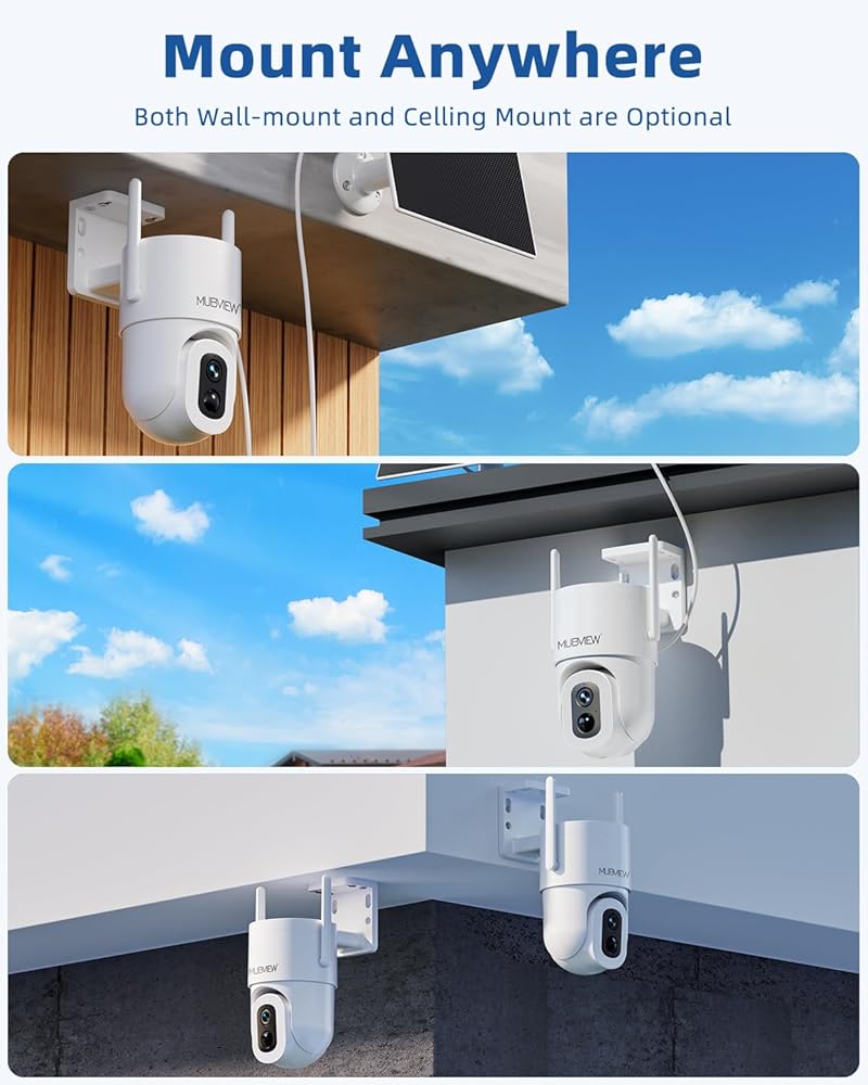 𝐏𝐓𝐙 𝐅𝐥𝐞𝐱𝐢𝐛𝐢𝐥𝐢𝐭𝐲 & 𝐖𝐢𝐝𝐞𝐫 𝐕𝐢𝐞𝐰𝐢𝐧𝐠 𝐀𝐧𝐠𝐥𝐞: Solar Security Cameras Wireless Outdoor Can 360° horizontal and 140°vertical rotations provide coverage of every corner for peace of mind. The outdoor security cameras 160° diagonal viewing angle lens ensures that your home is always in sight without any blind spots.