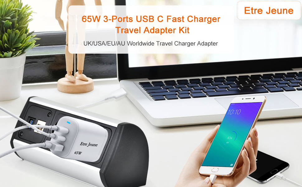 ⚡【Buy With Confidence】Package included a beautiful gift box with 4PCS (1x65W USB C Charger +1 x EU/UK/AU Converter). Etre Jeune is committed to provide our customer with high quality products and friendly customer service. If you have any questions, we will resolve your issue within 24 hours.