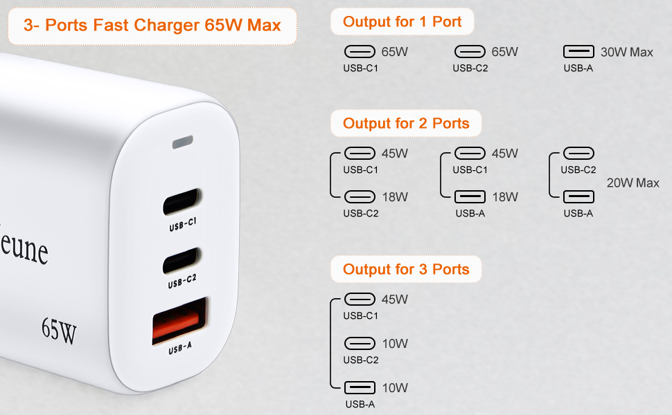 ⚡【Charge 3 Devices Simultaneously】 USB C 65W charger block with 2 USB-C ports and 1 USB-A port. Power will be distributed efficiently between ports when you connect three devices to ensure you get the best charging. The USB C charger is compatible with most USB-A and USB-C phones, laptops, tablets, and more. Including Mac Book, Dell, Google Pixel, Samsung, iPhone series, iPad series, and more electronic devices.