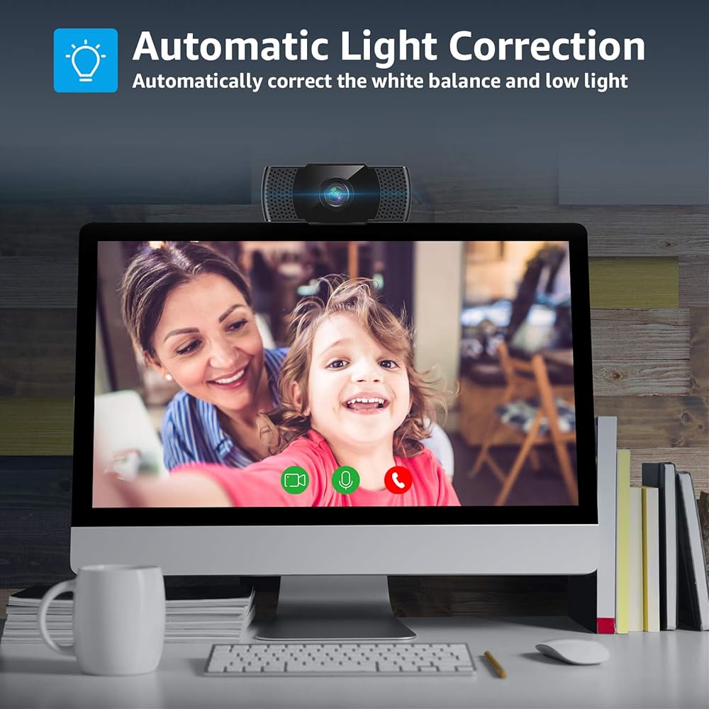 ★【1080P Webcam & Automatic Light Correction】Equipped with Full HD 1080P resolution and adopted the advanced H.264 compression techonology, the webcam for PC delivers fabulous quality image at 30FPS, making the video and image super clear. Bright correction function enables automatical brightness adjustment according to different using situation.