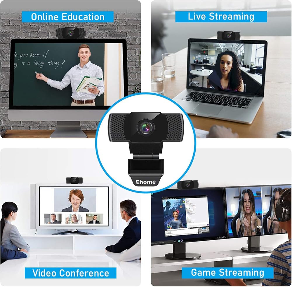 Ehome Webcam with Microphone, 1080P USB 2.0 Noise-Cancelling Web Camera Plug and Play Rotatable Laptop Web Cam for Desktop PC Video Calling Online Class Conferencing Streaming Recording Gaming