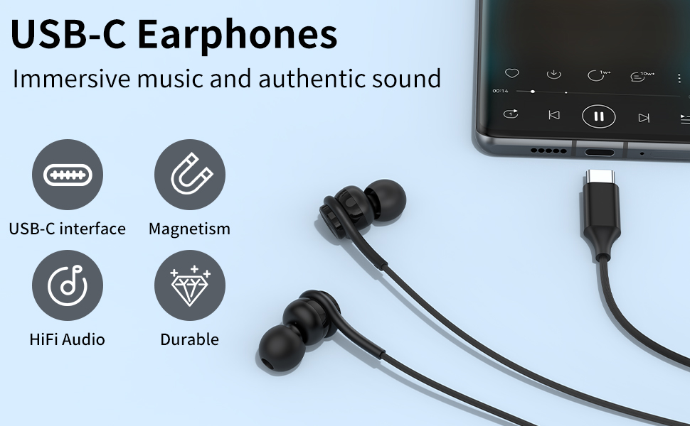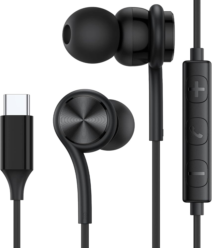 USB C Headphones Earbuds,USB Type C Wired Magnetic Noise Canceling in-Ear Headset with Microphone for iPad Pro iPhone 15 Pro Max Plus Samsung Galaxy S23+ S22 S21 S20 FE Ultra Note 10 20 Pixel 7 6 5 4