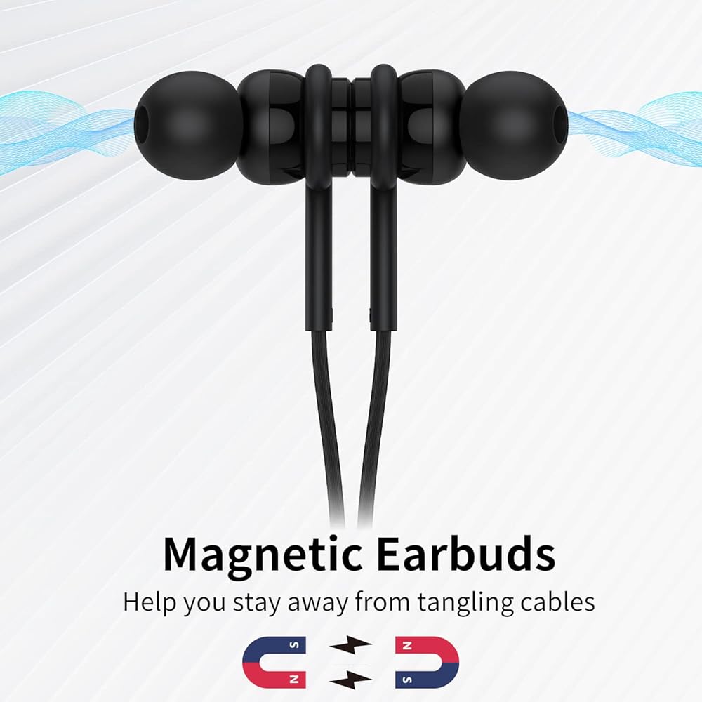 【Magnetic ,Lightweight and Comfortable】: Made of lightweight materials, these earphones are comfortable to wear for extended periods of time. Each earbud has a powerful magnetic embedded into the back, making them easy to roll up and use without tangling;