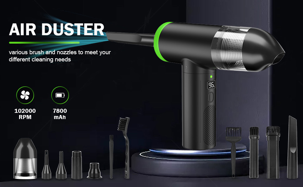 Compressed Air Duster - 102000RPM Electric Air Dusters Vacuum Cleaner, 7800mAh Rechargeable Air Blower for Keyboard and Computer Cleaner, Cordless Dust Destroyer Replaces Compressed Air Can
