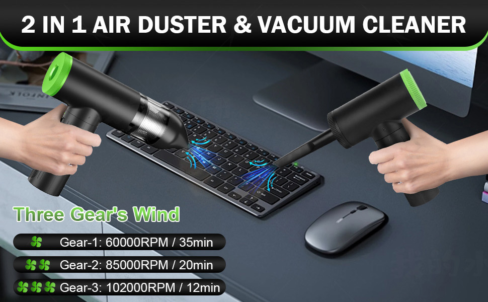 ✅【Vacuum Cleaner】The Air duster front can blow dust , and the rear end can vacuum. compressed air duster and vacuum cleaner is 2 in 1, Computer air blower keeping your Keyboard, PC and car clean easy.