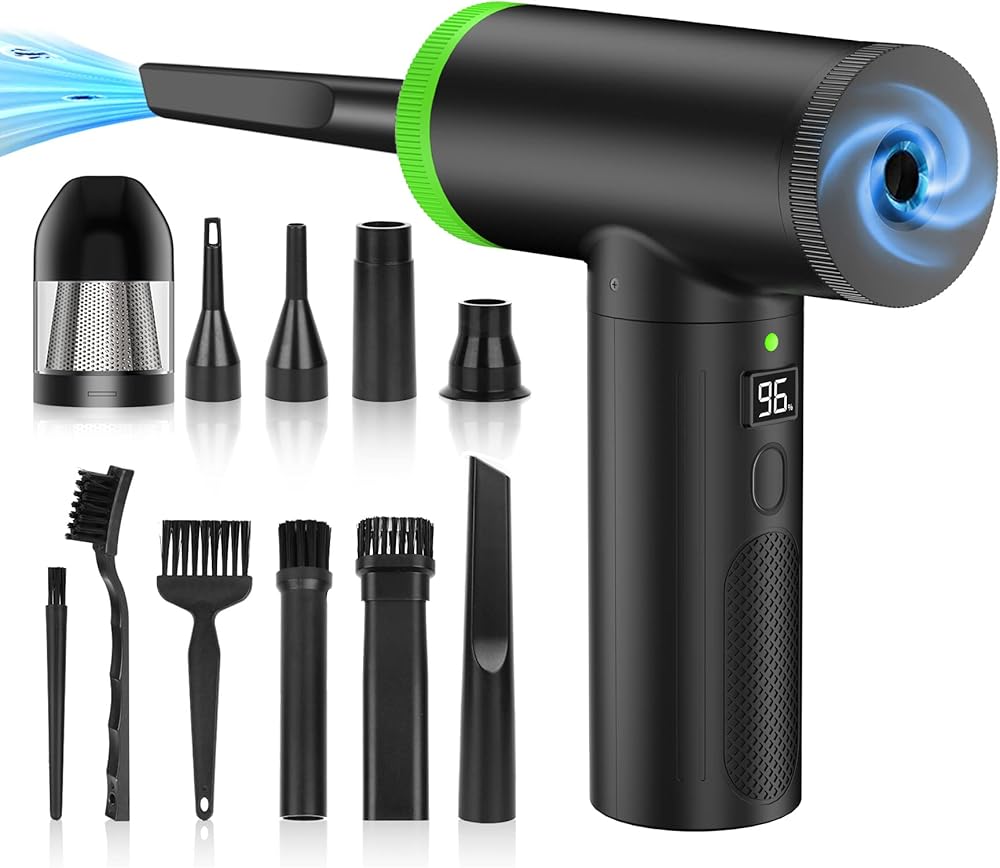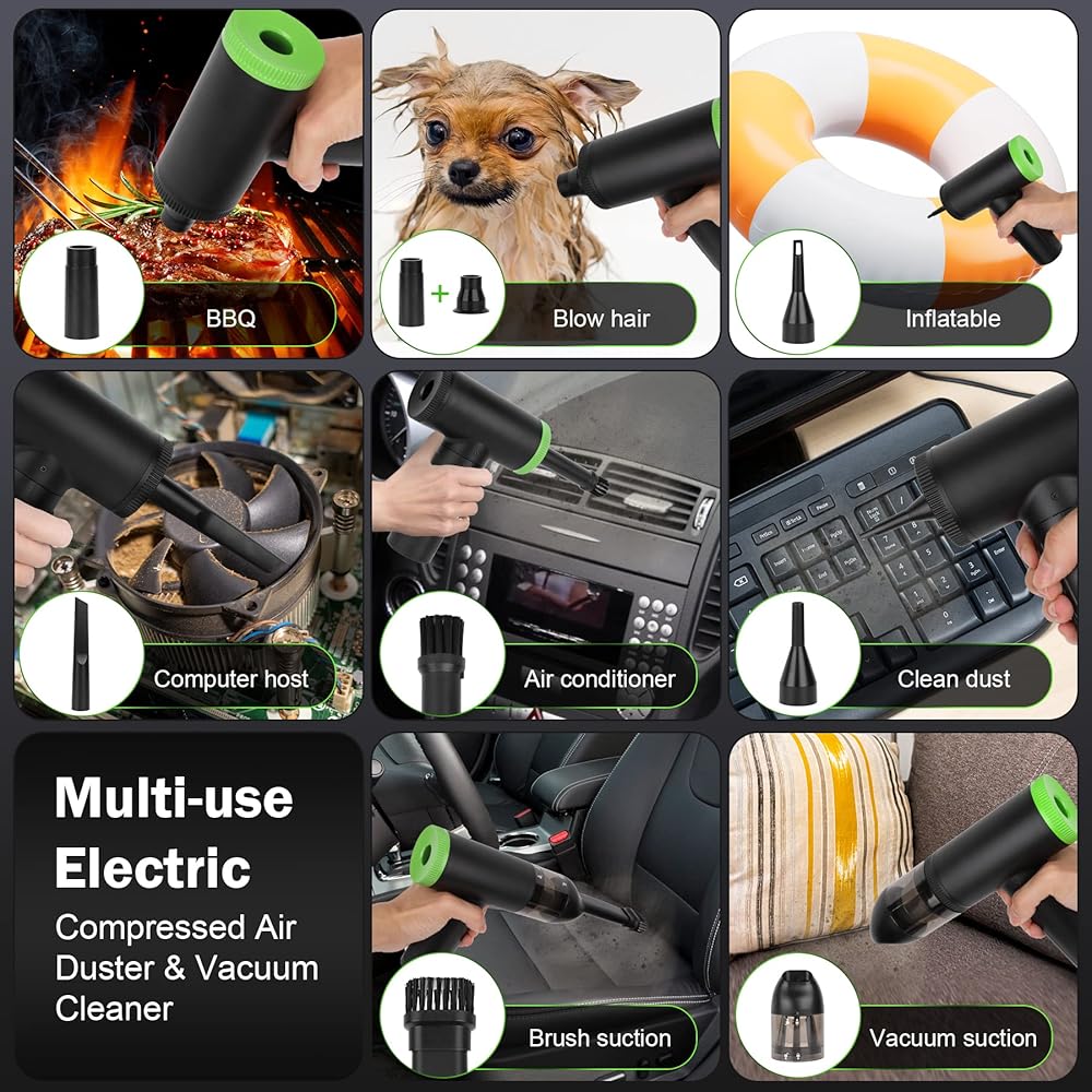 ✅【Electric Compressed Air Duster】 This compressed air duster designs with a motor whose rotating speed can reach up to 102000RPM, Can produce super-strong airflow, Blowing force for deep cleaning of the microscopic dust.