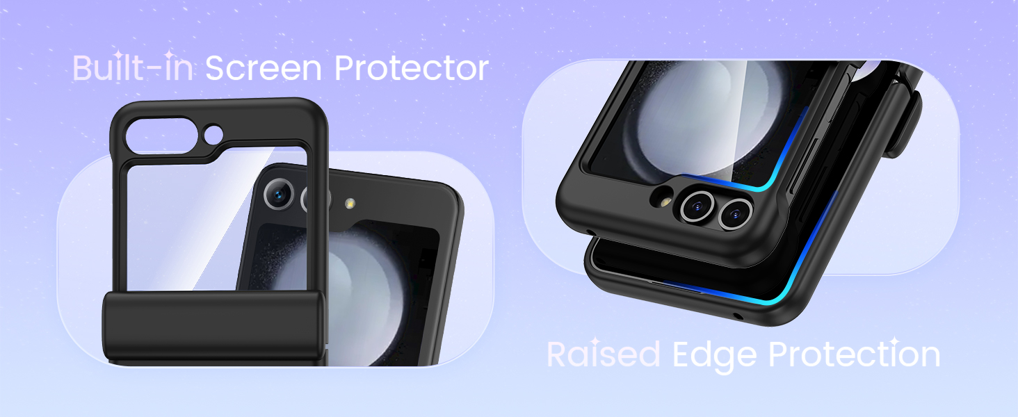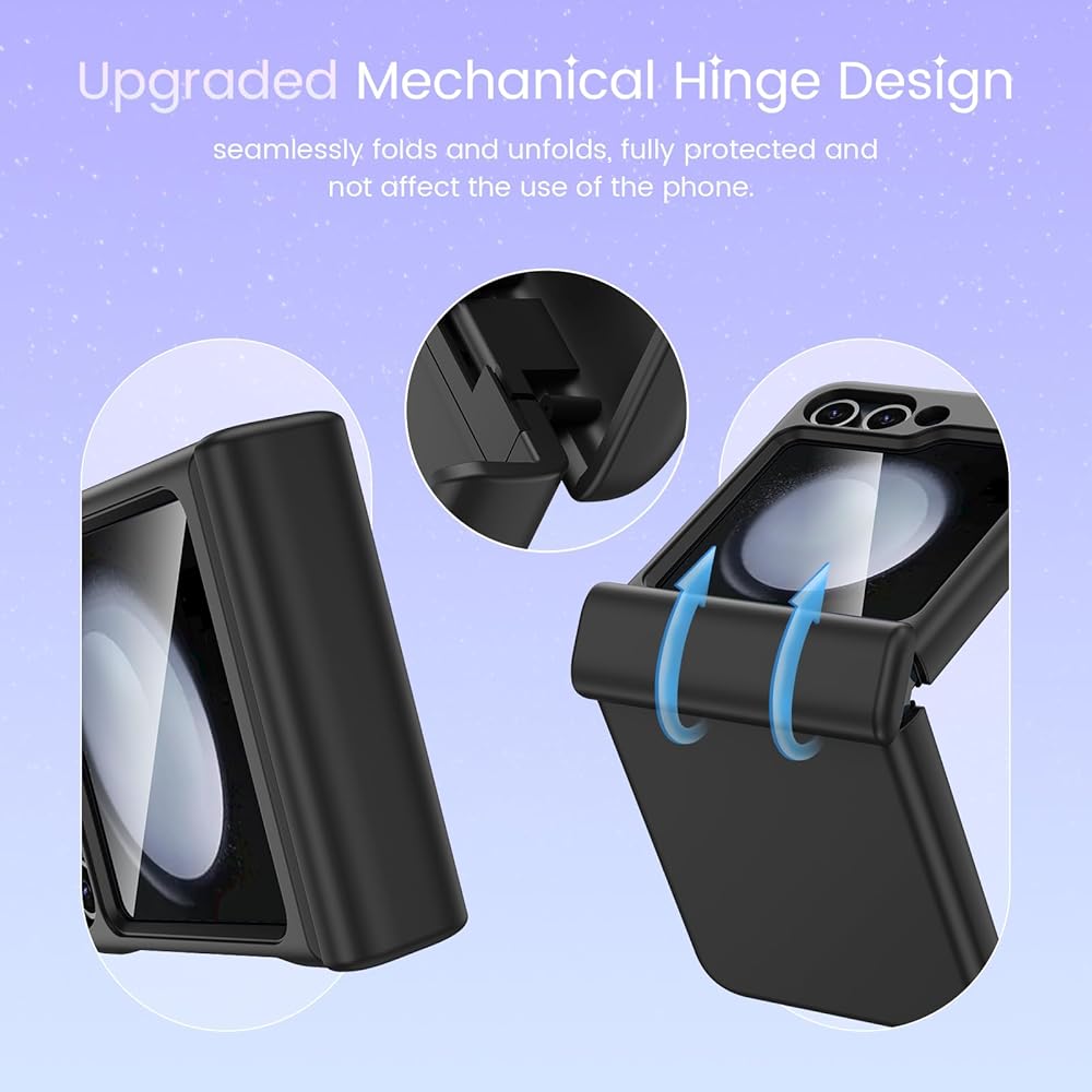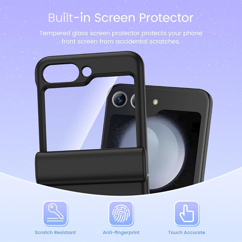 Built-in Screen Protector: Z Flip 5 case has a built-in screen protector, made of high quality tempered glass, which can effectively protect your phone front screen from accidental drops and scratches. The upgraded screen protector is waterproof and highly sensitive touch.