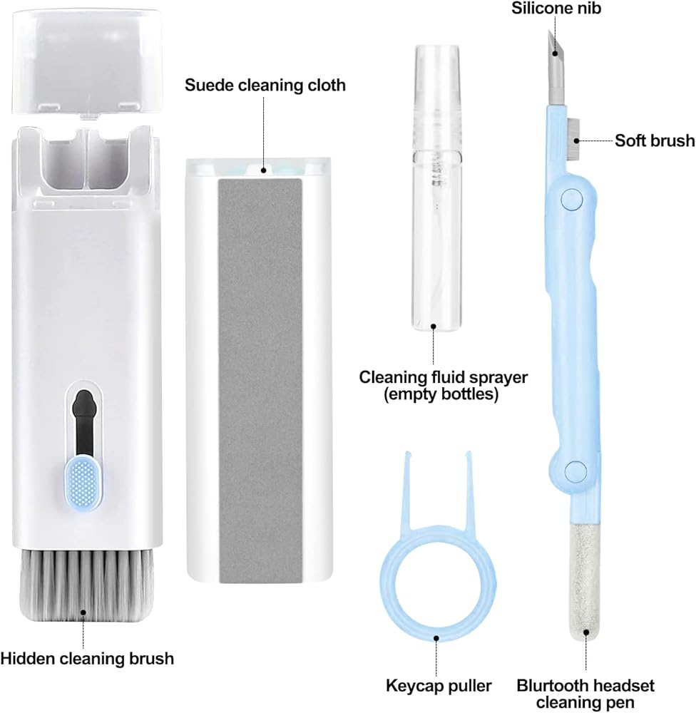 Computer keyboard Screen Cleaner, includes clean the pen tip, earphone brush, small elbow brush, headphone bin brush head, spray screen with cloth, air blower, extension rod, keycap puller, shaft puller,card pickup pin, keyboard camera screen soft bristle brush