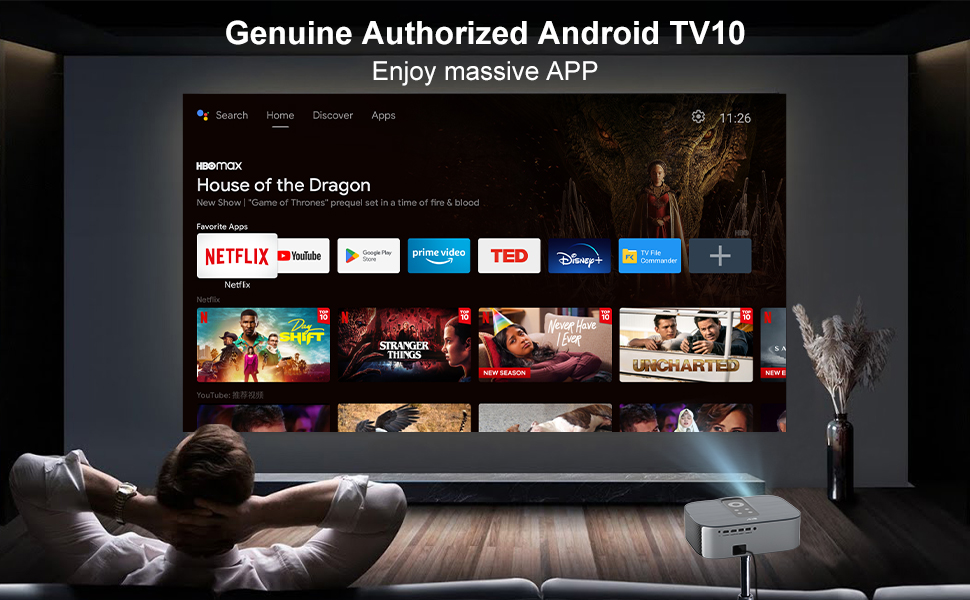 【🔥Smart Projector with Android TV】Integrated smart Android TV system so you can access online streaming services and run apps perfectly for endless fun with services such as Netflix, Prime Video, and YouTube.