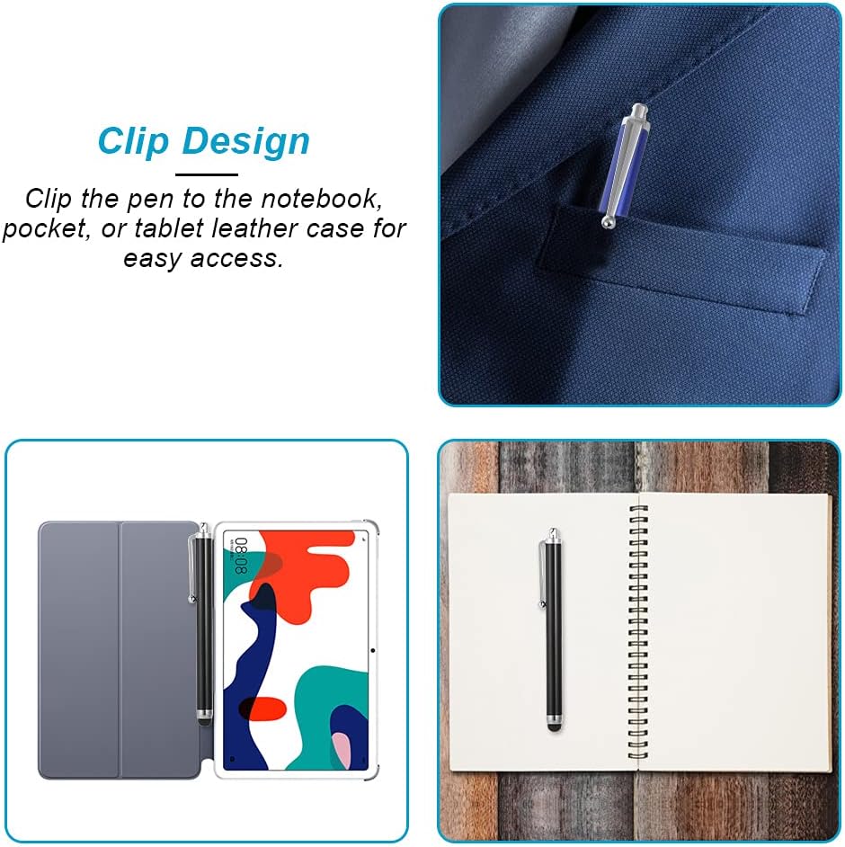 Easy to carry: With a clip on the top of the tablet stylus, you can hang the touch pens on your backpack or clip it to your pocket and book.