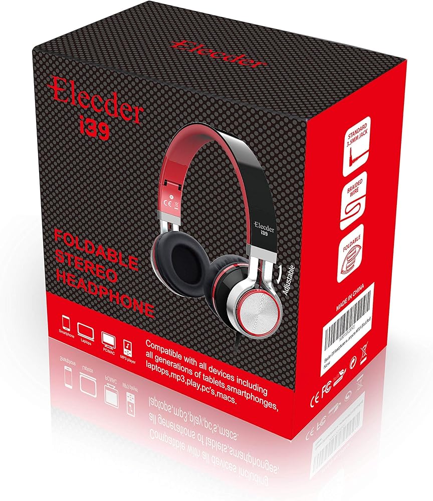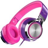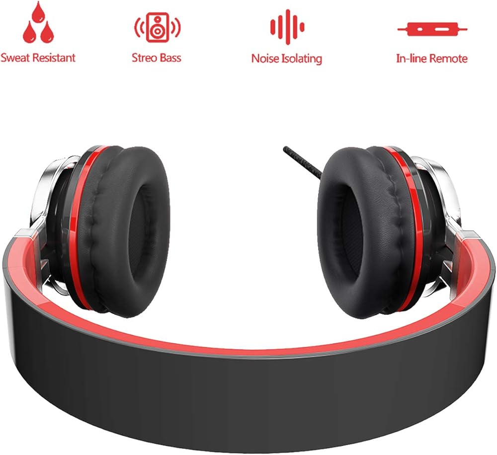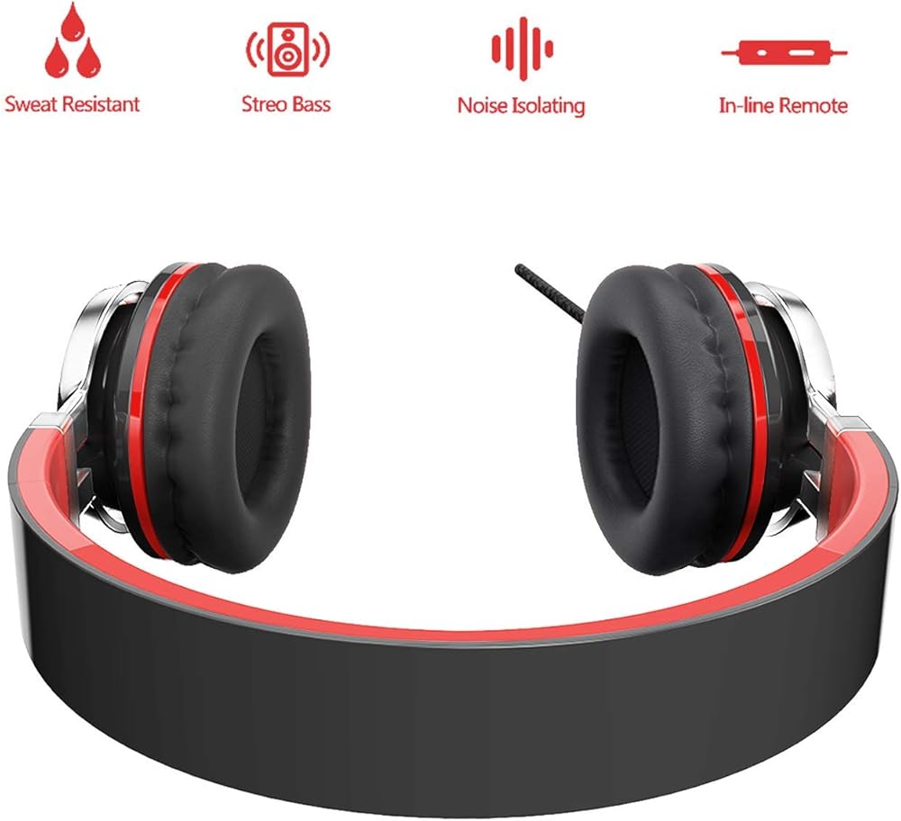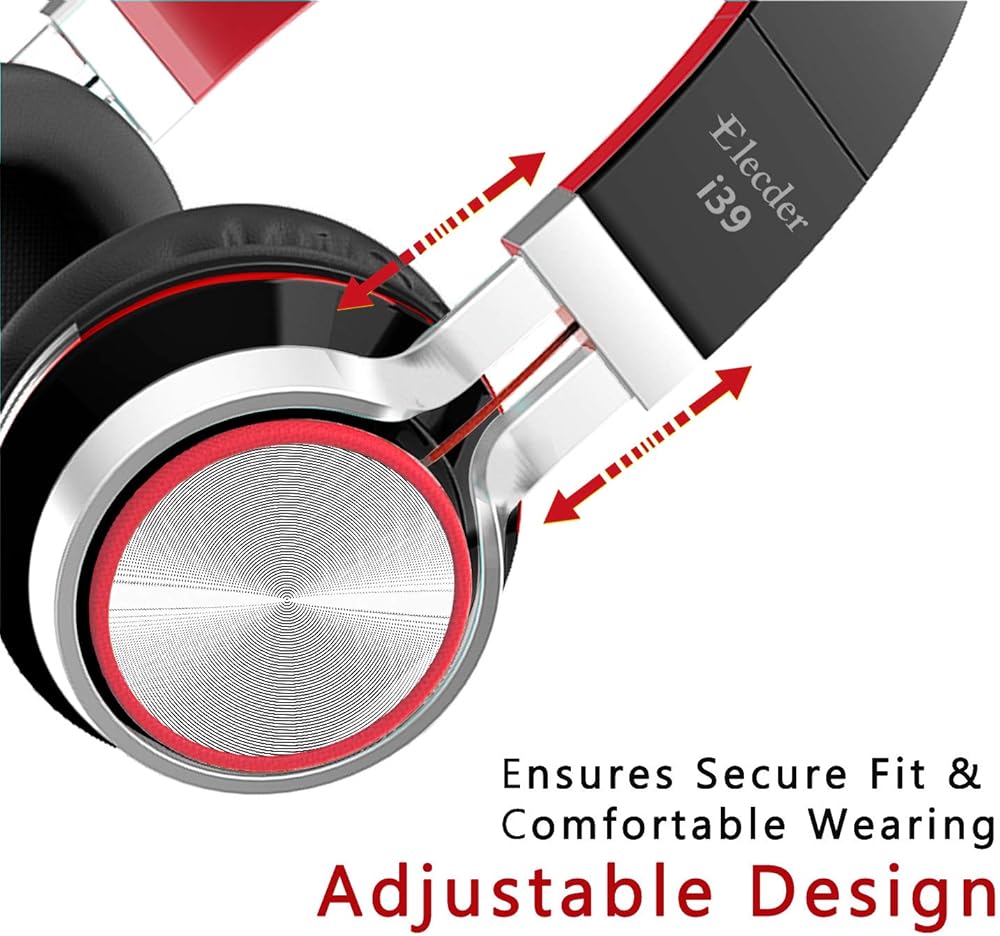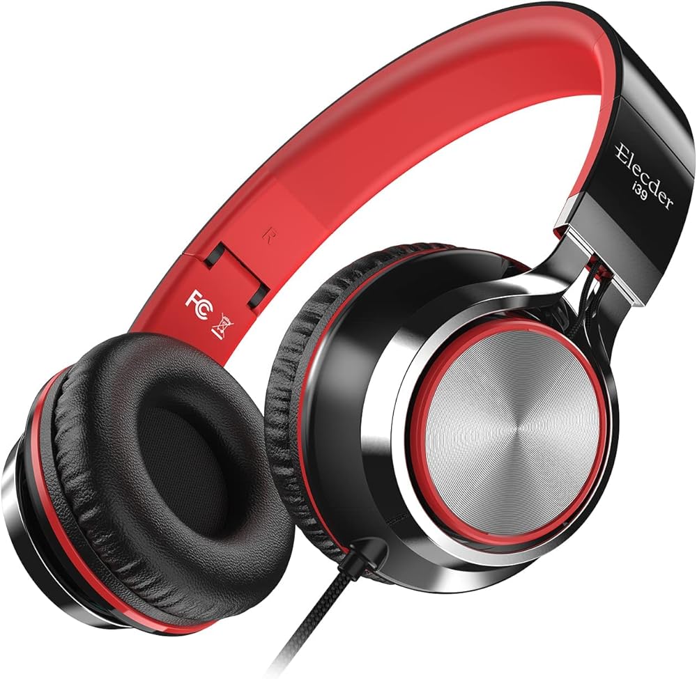 ELECDER i39 Headphones with Microphone Foldable Lightweight Adjustable On Ear Headsets with 3.5mm Jack for Cellphones Computer MP3/4 Kindle School Red/Black