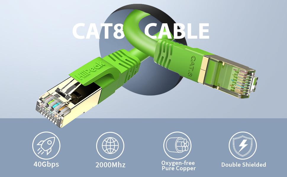 🚀Special Color, Easy Distinguish: HiiPeak Patch Cables come in a special green color so you can see at a glance to distinguish it against other plugs/cables at your device or workstation. Nail Clips just Free for over 15FT length cat 8 green ethernet cables.