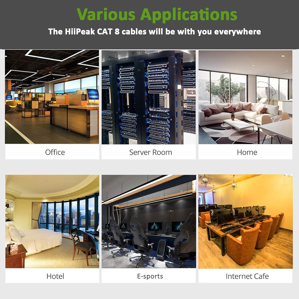 تعال وجرب كابلات شبكة HiiPeak CAT8 الخاصة بنا - السرعة التي تفوق خيالك، وتدعم معدل نقل البيانات حتى 2000 ميجاهرتز وسرعة نقل البيانات 40 جيجابت في الثانية.