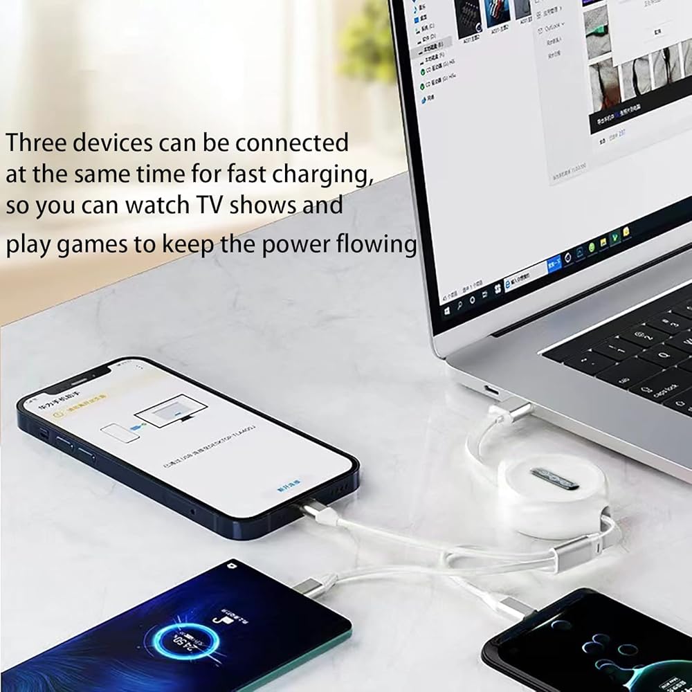 This product is equipped with 3 charging ports, which can meet different needs. The product color is white, which can be matched with multiple scenes. The retractable 3-in-1 cable is easy to put into handbag, laptop bag, pocket, etc. The length size can be adjusted according to demand, perfect for home/office, outdoor, etc. Small size, light weight, most flexible and powerful, no need to carry any other charging cable when traveling in car, office or outdoors. Charging cable is coated with high quality TPE/pure copper core at multiple ends, new expanded charging speed, passed 10,000 times bending test, not easy to break. Suitable for most charging devices Mobile phones, tablets, Bluetooth headsets, stereos, game controllers, etc.Creative 3-in-1 with wheeled construction design, small size, light weight, most flexible, powerful, no need to carry any other charging cable when traveling in car, office or outdoors, a must for Uber and Lyft carpoolers. Creative 3-in-1 with wheeled construction design, small size, light weight, most flexible, powerful, no need to carry any other charging cable when traveling in car, office or outdoors, a must for Uber and Lyft carpoolers.