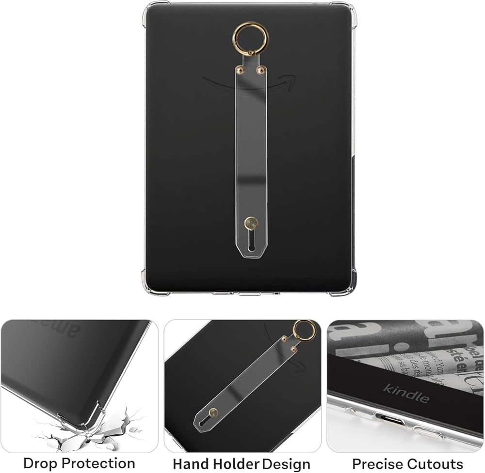 Clear Case for 6.8" Kindle Paperwhite 11th Generation 2021 and Signature Edition TPU Back Cover, Bumper Corners Slim Protective Case for 11th Gen Kindle Paperwhite- Transparent (with Handle Strap)