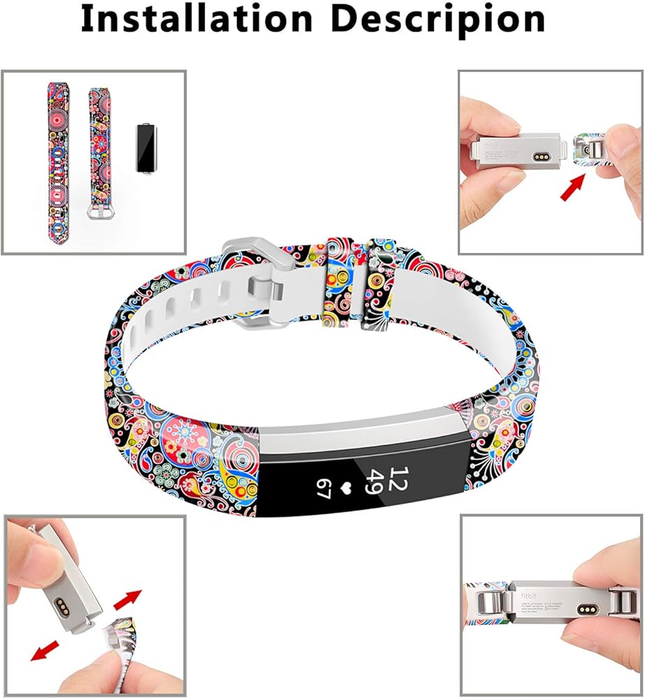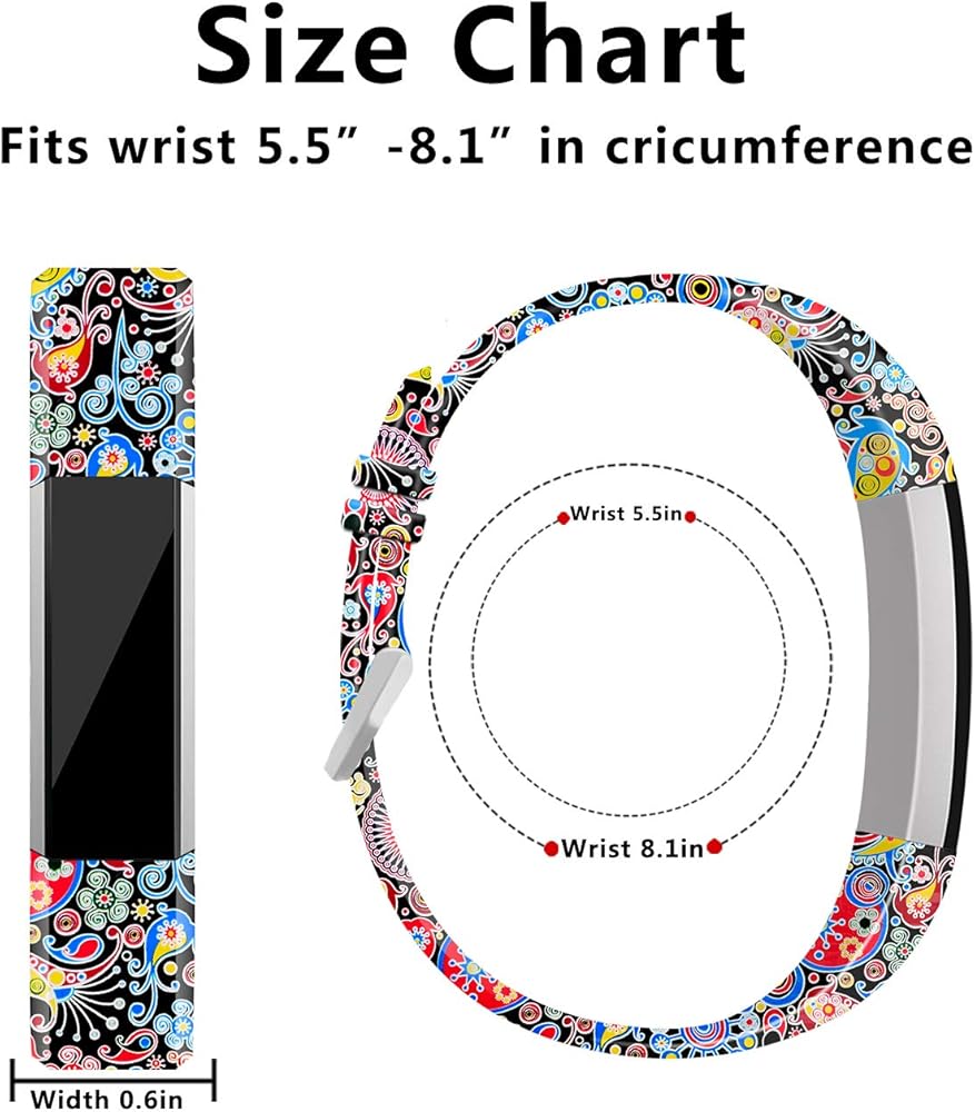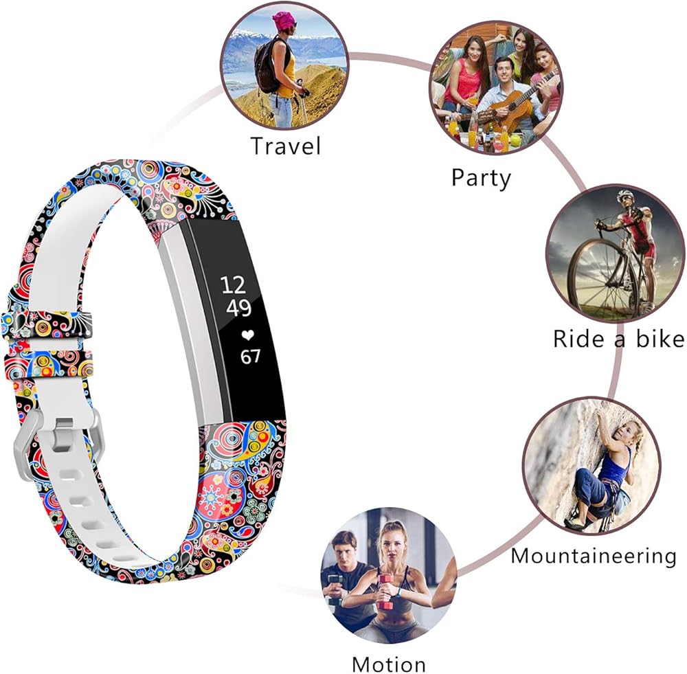 COLORFUL AND ADJUSTABLE: 10 fashion durable pattern print design bands match our outfits. Utilize advanced printing craft prevent your watch band fading and make it corrosion-resistant and durable. Standard size fit for 5.5"-8.1"wrists. Precise multiple alternative holes for adjusting suitable length for your alta, alta HR wristband for women, men and kids.