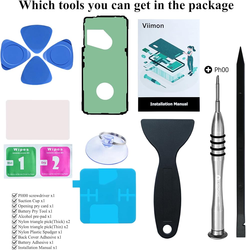 【Installation Manuel and Repair Toolkit are Included】The detailed installation manual is included and it makes the process easy and hassle-free. It comes with a full set professional toolkit also to help you take apart the phone and remove the old battery with no issue.