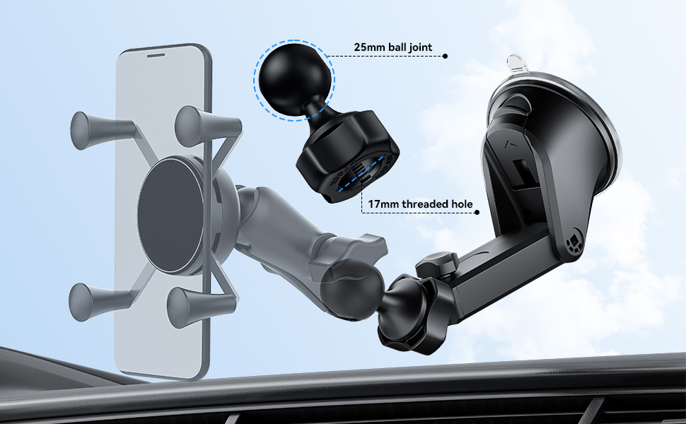👍17mm threaded hole compatible with 17mm swivel ball. 1"/ 25mm ball adapter with internal silicone pad protection for increased friction and load carrying capacity.