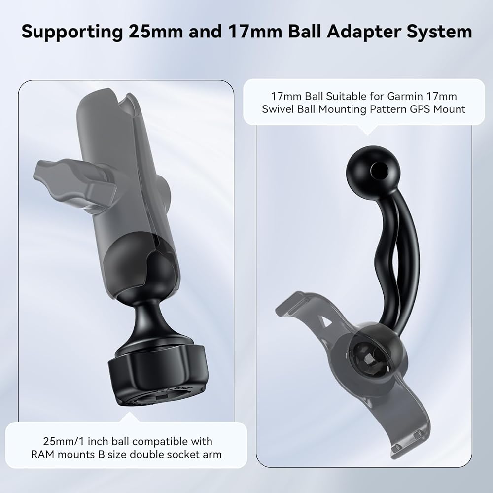 25mm/1 inch and 17mm Ball Mount Adapter Fits for RAM Mounts B Size Double Socket Arm, Fits for Garmin 17mm Swivel Ball Mounting Pattern GPS Mount, with 0.67" Mount Ball