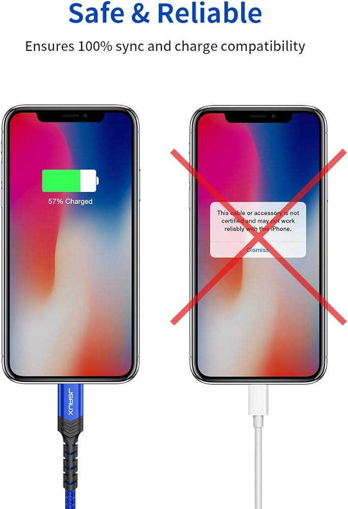 【Upgarded C89 MFi Certified Lightning Cable】: Certified by MFi and built with Apple's upgarded C89 terminal(More durable) and smart chip promise no warning message pops up. At the same time, this iPhone charger cable supports fast charging (up to 2.4A) while preventing overheating and overcharging, ensure that you and your devices are safe
