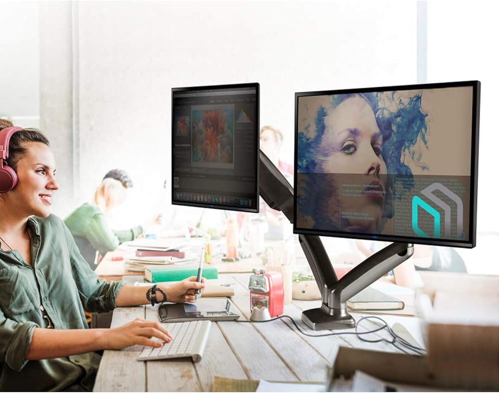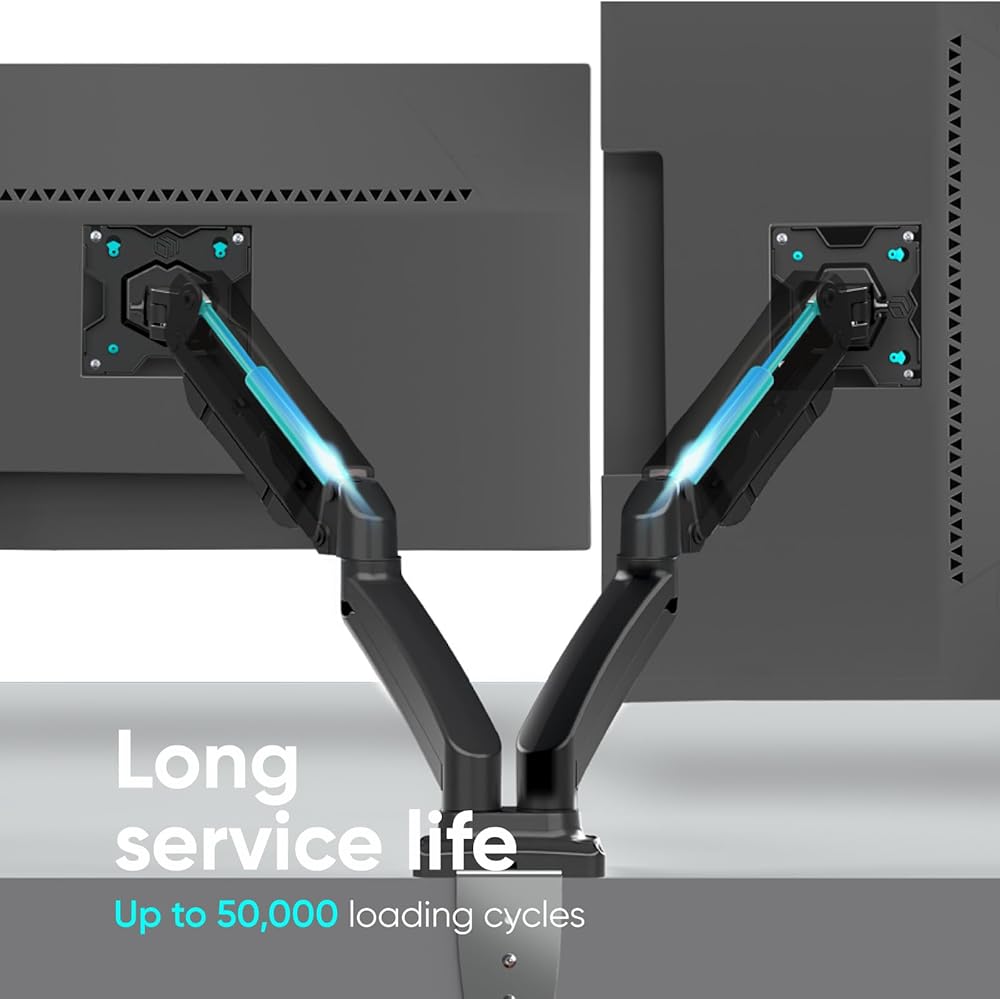 PREMIUM QUALITY | What makes this heavy duty monitor arm remarkable is the thought-out design of the monitor arm mount and high quality of all parts of dual monitor stands | From the VESA mount monitor, soft protective inserts, to long-lasting gas spring system - we do everything to make sure you're happy with your PC monitor stand