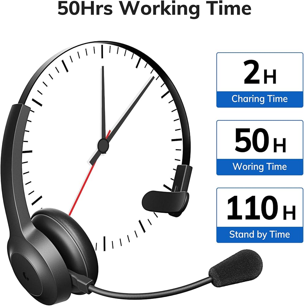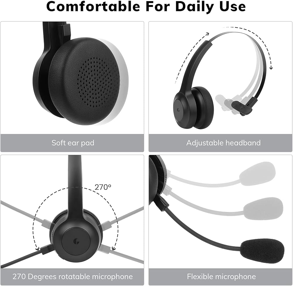 Comfortable for Daily Use - The bluetooth headset features ultra-soft ear cups and an adjustable headband and weighs only 0.17 lbs. Perfectly designed to provide you with a comfortable experience. The mute button on the headset can turn the microphone off and on at any time during a call, making it convenient for you.