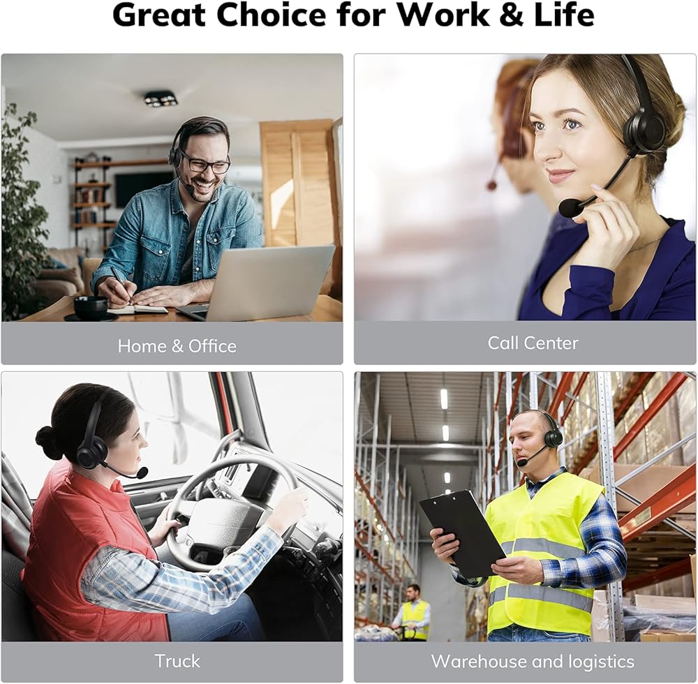 Wide Compatibility - ELEVOC bluetooth headset with microphone is widely compatible with smartphones, computers, PC, tablets, etc. It provides a stable connection within Zoom, Skype, Microsoft Team, WebEx, and Facetime. Great for truck drivers, WFH, warehouses, call centers, etc.