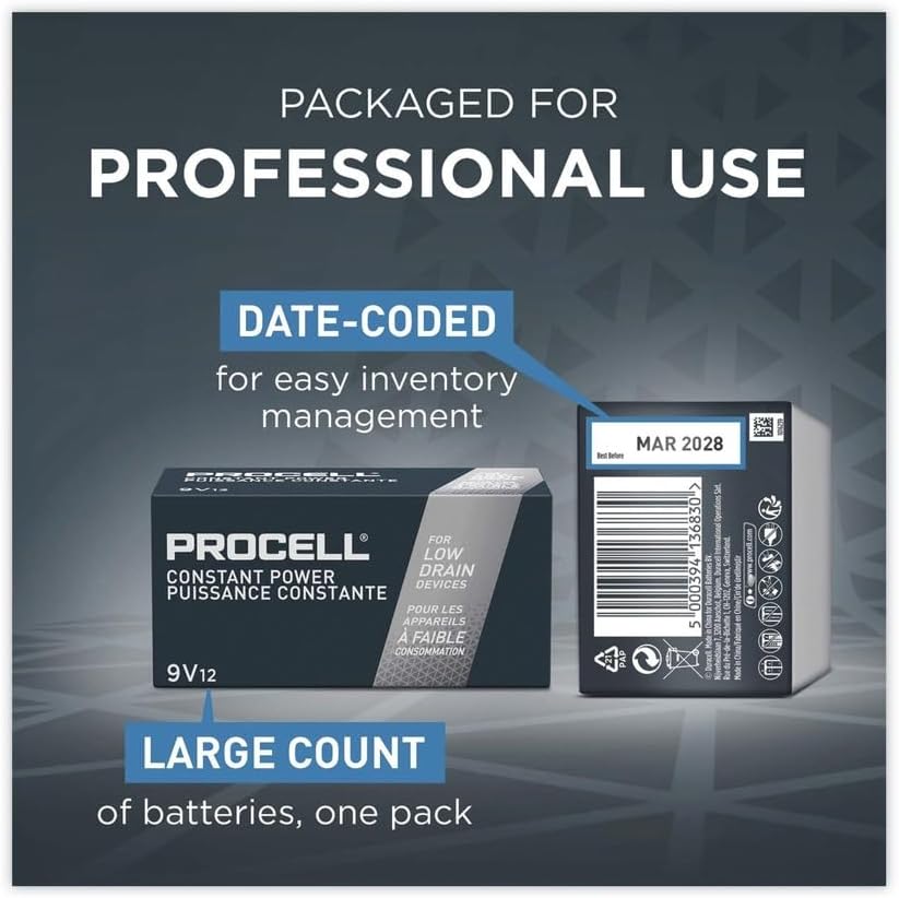: Duracell PC1604BKD Procell Alkaline Batteries, 9V (Pack of 12) – style and color may vary