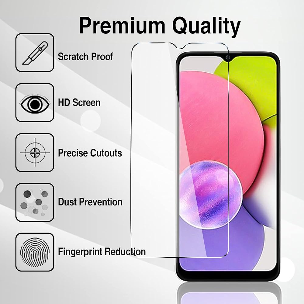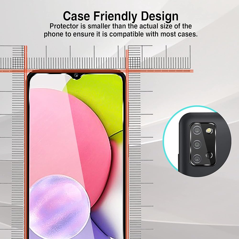 [Compatible device] Only applicable to Samsung Galaxy A03s 6.5 inch, this package contains 2 packs of tempered glass camera lens protection film and 2 packs of screen protection film.[not Samsung Galaxy A02s]