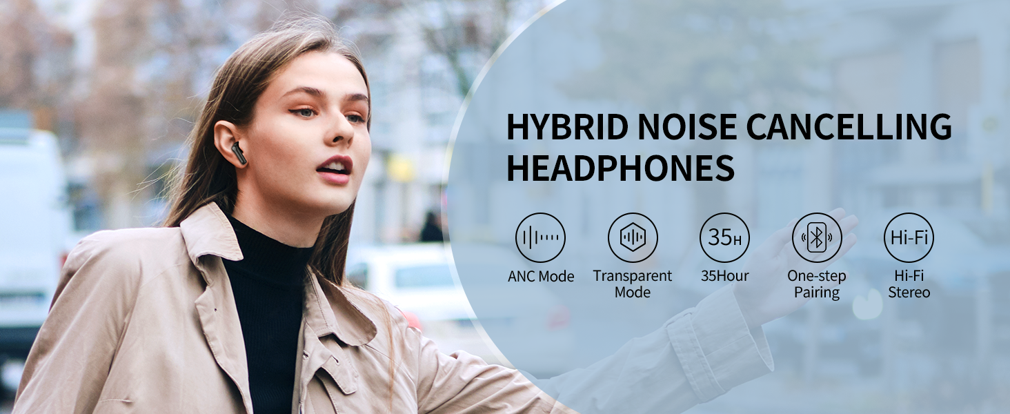 【Transparency Mode】NC2 wireless earbuds through the built-in microphone to capture the sound of the surrounding environment, you can hear the sound of your surroundings without taking off your earbuds or pausing your music. So you can communicate with people around you,hear the airline or subway announcements and avoid missing important information while listening to music.