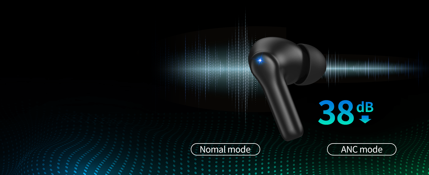 【NEXT-LEVEL Hybrid Active Noise Cancellation&4MIC】NC2 wireless earbuds achieves up to 38dB noise cancellation and prevent 90% of noise.Built-in Dual Noise Cancelling Microphone suppresses environmental noise.Outward ANC uses microphones on the outside of the earbuds to pick up external noise and create an inverse sound wave to cancel it out. Inward ANC uses microphones inside the earbuds to pick up any remaining noise and cancel it out.
