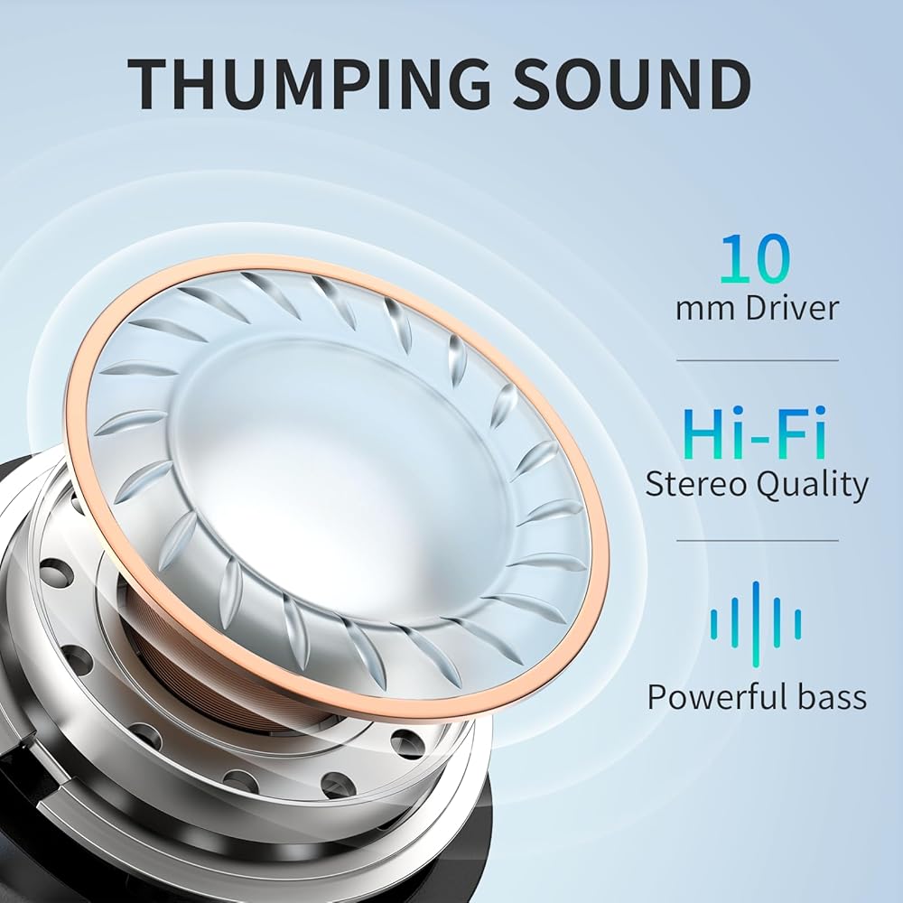 【Stereo Sound Qality】NC2 noise cancelling headphones feature 10mm speaker drivers for deep bass and high-resolution mids and highs. Whether you're listening music or watching a movie,wireless earbuds provide an immersive audio experience.
