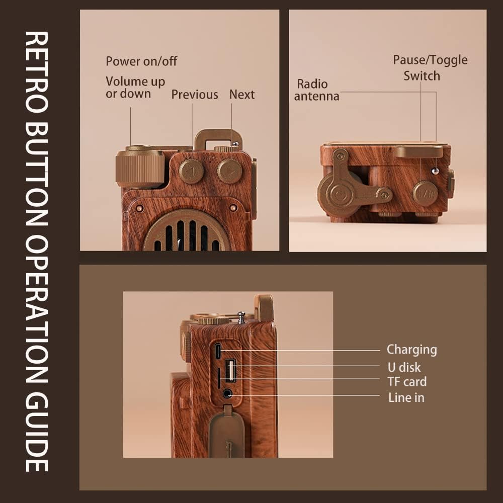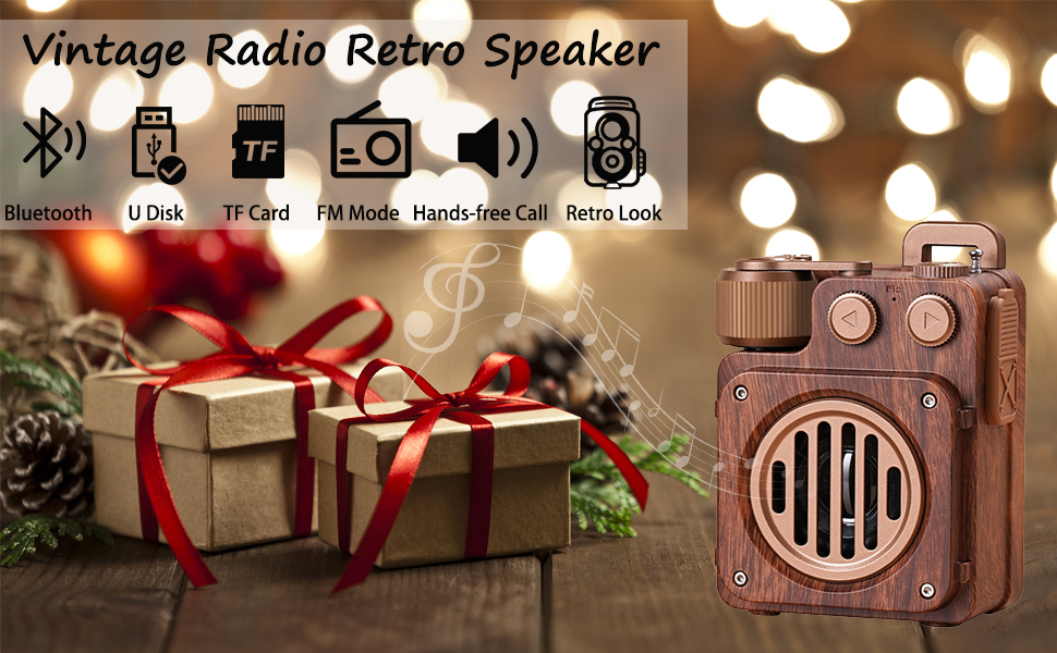【 Convenient Multimedia Playback 】Equipped with Bluetooth 5.1 technology, the old time bluetooth speaker provides efficient and stable wireless transmission with strong anti-interference capabilities. It is compatible with smartphones, tablet computers, and other devices with Bluetooth functionality, allowing you to enjoy your music wirelessly and uninterrupted. Additionally, This unique vintage speaker supports TF cards, AUX cords, and USB disks, and can be connected to other audio devices via a 3.5mm AUX cable.