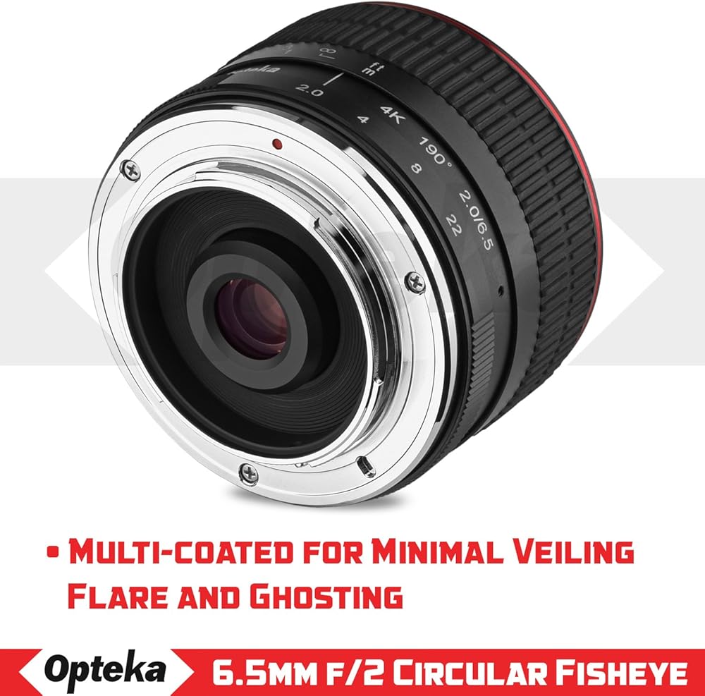 The Opteka 6.5mm f/2 fisheye offers a diagonal angle of view of 190-degrees, bringing an unique distinctive perspective and extreme deformation effect. It not only gives photos but also movies an extraordinary view to add an impressive scene to the story even for TV contents, films and web movies. Featuring an optimized design, this lens uses a series of 6 optical glass elements (one SD super-low dispersion) in 5 groups. The adoption of an SD lens element achieves a stable descriptive performance from close-up to infinity minimizing chromatic aberration and distortion throughout the aperture range. The closest focusing distance is as short as 0.05m (1.9 inches), enabling you to focus sharply on anything right up to the glass. A 9-blade aperture diaphragm delivers perfect 18 point sunstars. Consistent performance is achieved throughout the focusing range and a high definition anti-reflective coating suppresses lens flare and ghosting for increased contrast and color fidelity. The Opteka 6.5mm f/2 is also characterized by a fully metal robust physical design for intuitive, exacting handling.