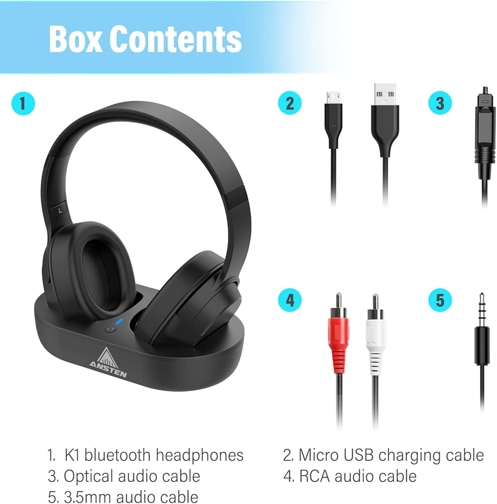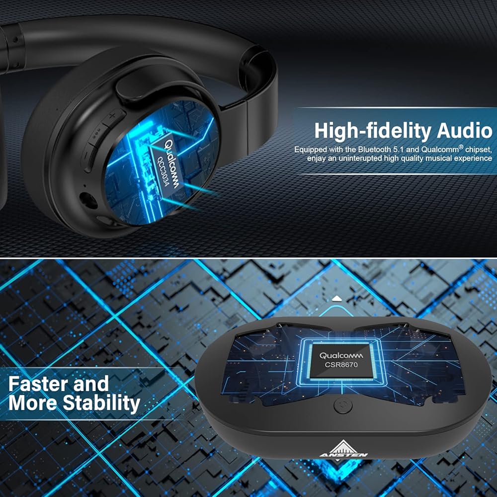 ANSTEN Wireless Headphones for TV Watching with Digital Optical RCA AUX 3.5 MM Transmitter Charging Dock, Over Ear Headset for Seniors, 30 Hrs Playtime, Plug and Play