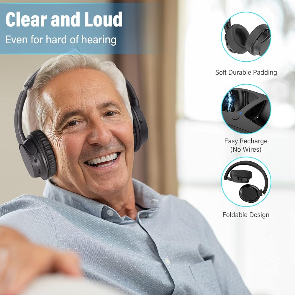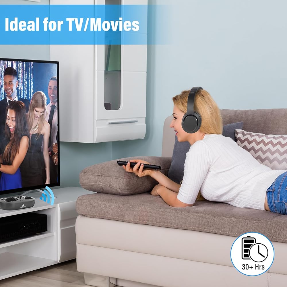 ๐บ๐งใPreserve the hearing of the other membersใNo more TV volume so loud it can be heard 3 rooms away or by the neighbor. These cordless headphones for tv will help someone with hearing problems, especially while watching TV. So multiple people can watch TV at a normal sound level, while the person wearing the headphones can hear the program clearly. It's the best wireless tv headphones for you to listen to your favorite TV shows/movies at your own volume.