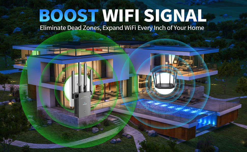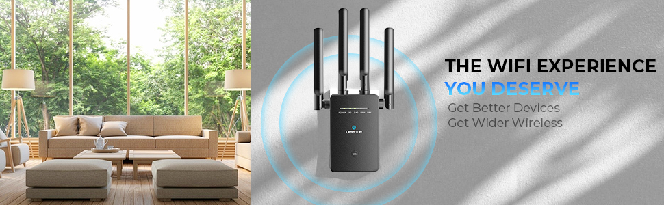 UPPOON WiFi Extender Signal Booster for Home, 1200Mbps Internet Booster Covers up to 5000sq.ft, 2.4 & 5GHz Dual Band Wireless Signal Amplifier Repeater, 1-Tap Setup, WAN/LAN Port, Alexa Compatible