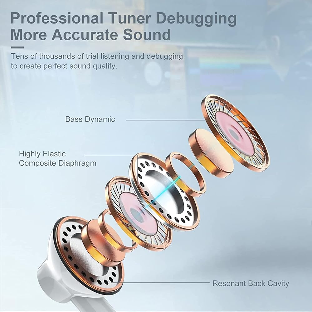 【High-Quality Sound】The in-ear earphones provide clear, top studio-quality performance with driving bass, tight mid, and precision treble response. Let you feel high definition music.