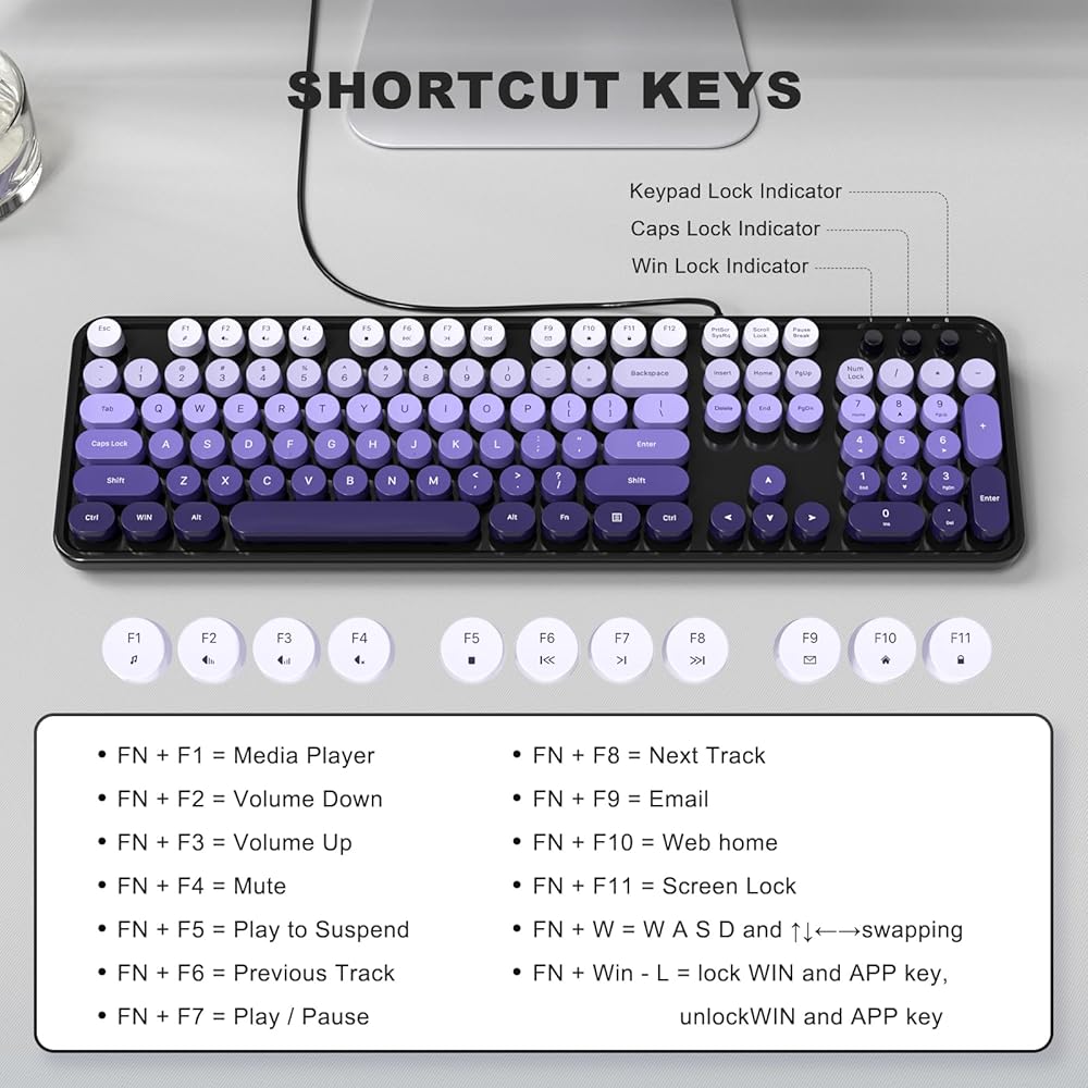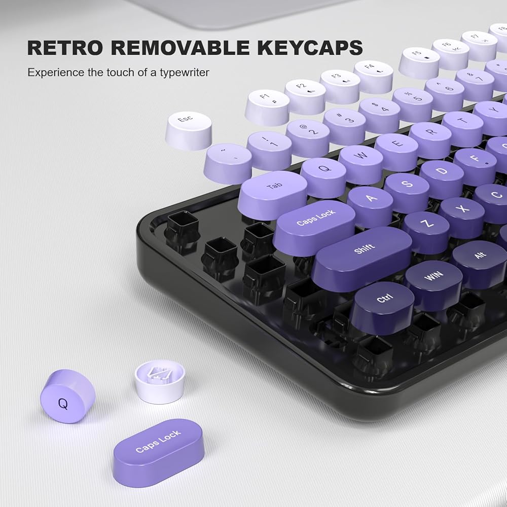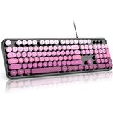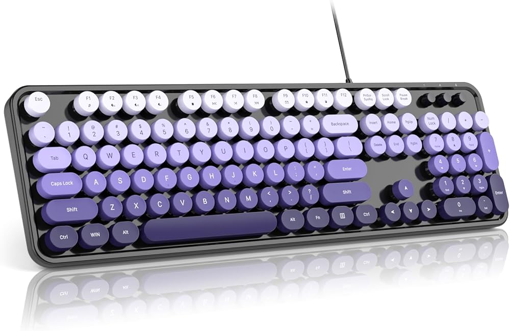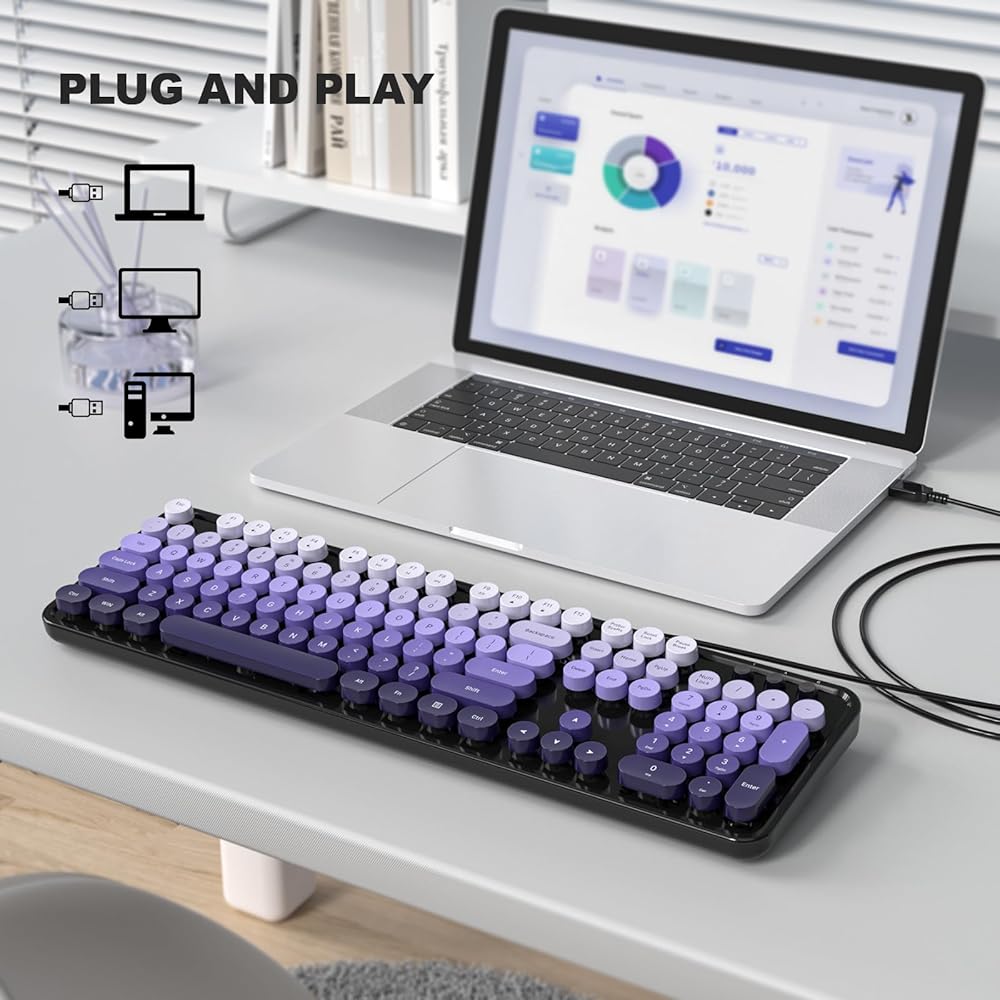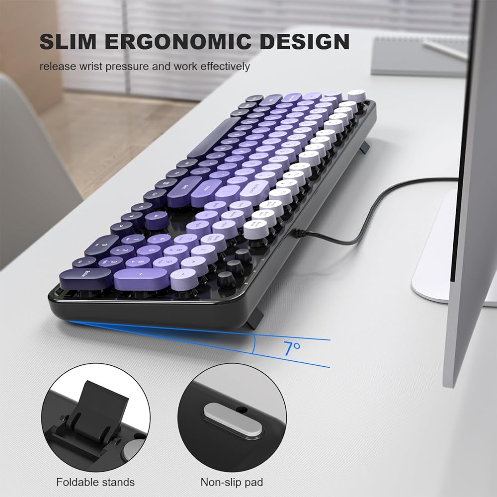 MOFII Keyboard Wired, Full Size Retro Typewriter Keyboard Round Key, USB Wired Plug and Play, for Laptop, PC, Desktop, Windows (Black Purple Gradient Color)