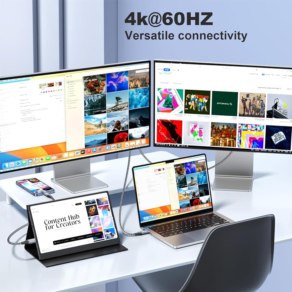 【مخرج فيديو وصوت 4K@60 هرتز يدعم Thunderbolt 3/4】يدعم كابل العرض USB من النوع C إلى النوع C نقل الفيديو بدقة 4K، استمتع بمشاهدة مقاطع الفيديو بدقة أكثر وضوحًا لتوصيل شاشة/شاشة USB-C حتى 4K*2K@ 60 هرتز. ملاحظة: تعمل وظيفة الفيديو فقط مع تلك الأجهزة التي يدعم منفذ USB C فيها وضع DP Alt. بالنسبة لجهاز iPad Pro 2018، لا يمكن لهذا المنتج دعم إخراج الفيديو.
