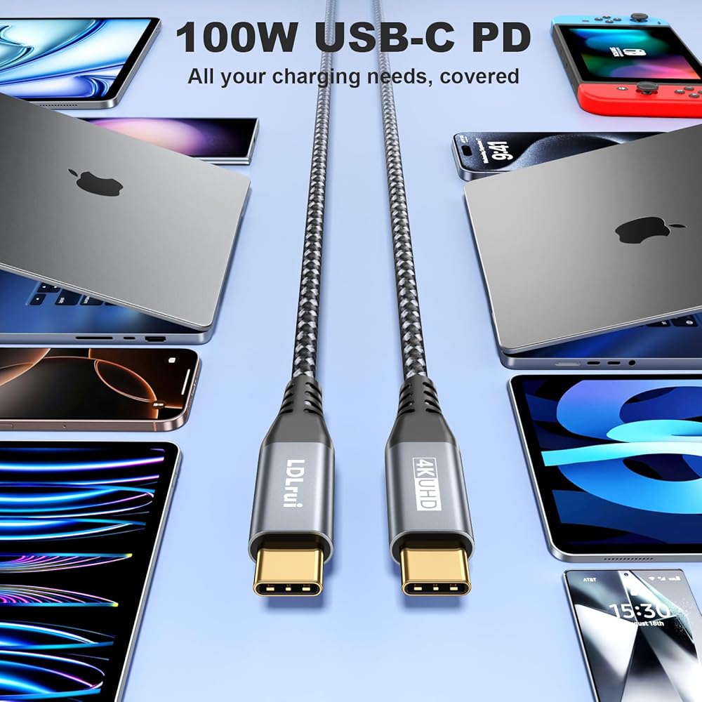 【ما تحصل عليه】كابل LDLrui مطلي بالذهب من USB-C إلى USB-C 3.2 Gen 2x2 (6 أقدام، عبوتان)، ناقل الحركة + الشحن + كابل بيانات نقل الصوت والفيديو الشامل، استرداد المال لمدة 30 يومًا، ضمان مدى الحياة رائد في الصناعة ودعم فني مدى الحياة.